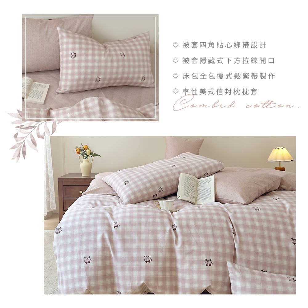DUYAN竹漾 【文青日常系列】40支精梳棉床包被套組 / 櫻粉蜜格 台灣製單人床包二件組|雙人床包三件組|雙人加大床包三件組|單人床包被套三件組|雙人床包被套四件組|雙人加大床包被套四件組|單人三件式鋪棉兩用被床包組|雙人四件式鋪棉兩用被床包組|雙人加大四件式鋪棉兩用被床包組Bedsheets, Pillowcases & Bolster CasesDUYAN竹漾寢飾│網路寢具第一品牌