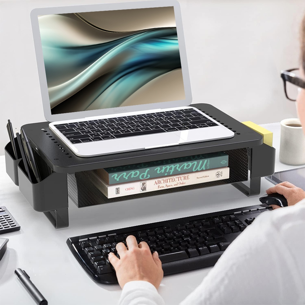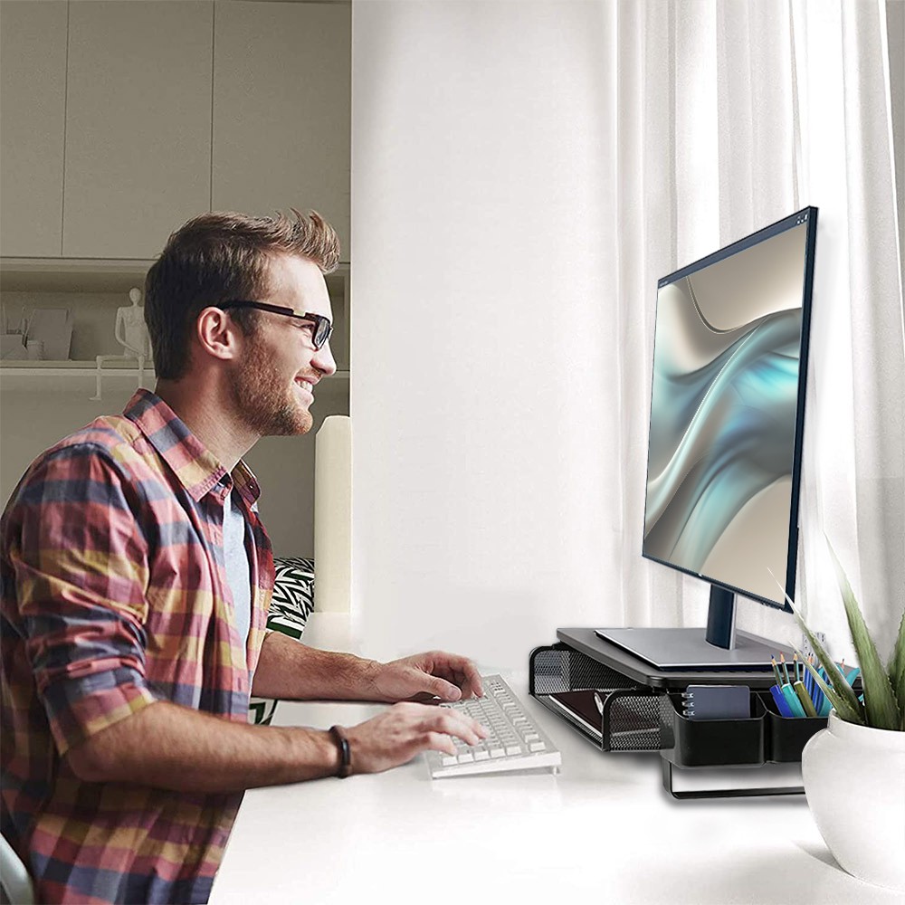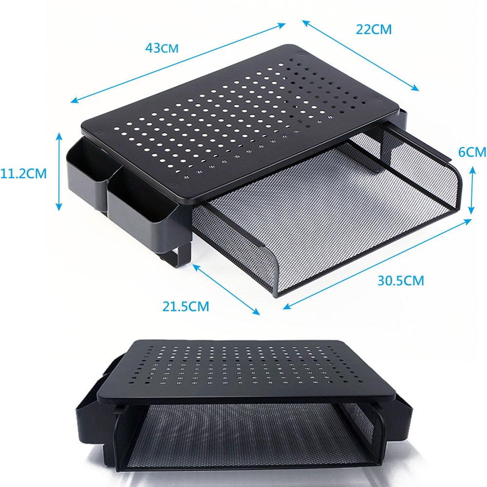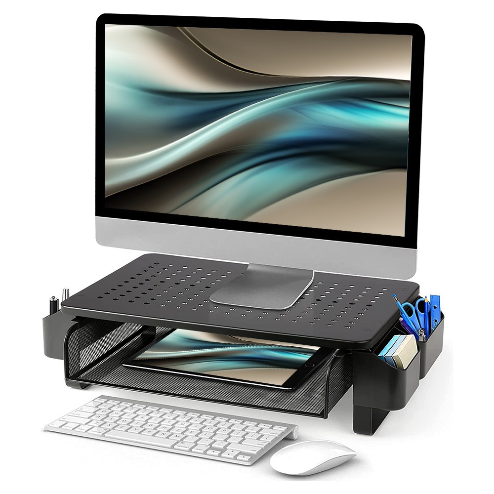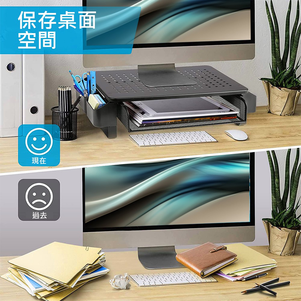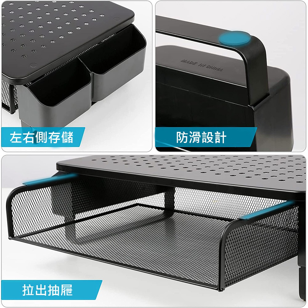 Ermutek 桌上型螢幕收納架螢幕增高架+雙側收納抽屜 桌上螢幕架 電腦螢幕架 螢幕收納架