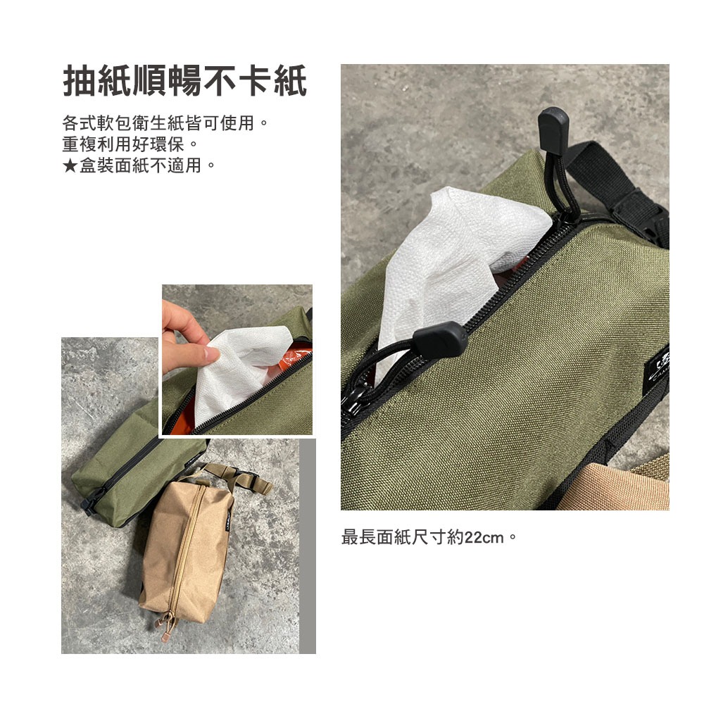 面紙收納包 面紙袋 衛生紙套 面紙套 車用面紙套 吊掛面紙盒 戰術面紙盒 收納 露營黑色|沙色|軍綠色Tissue HoldersCAMP WORLD 逐露 天下 露營 登山 生活 商城旗艦店