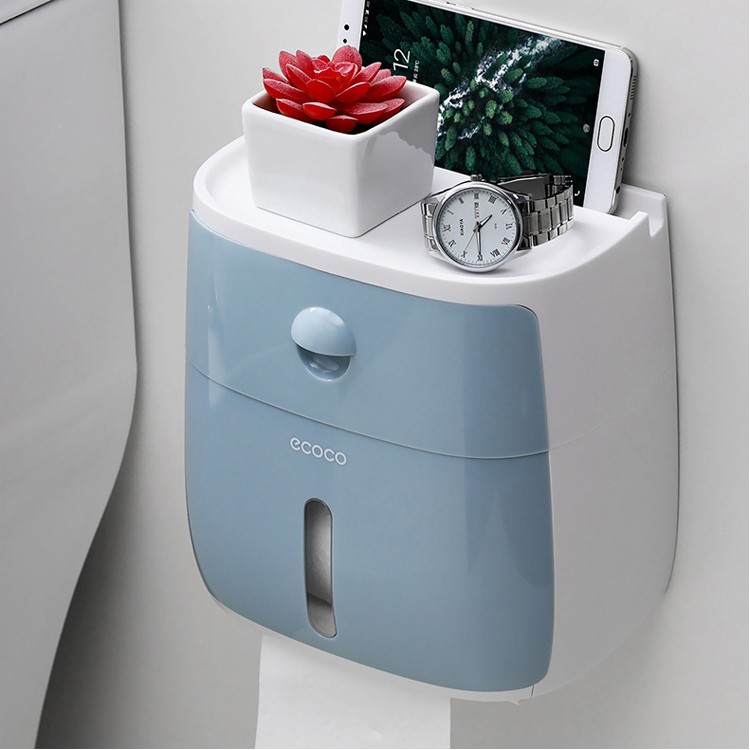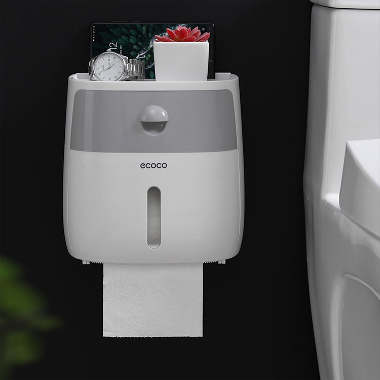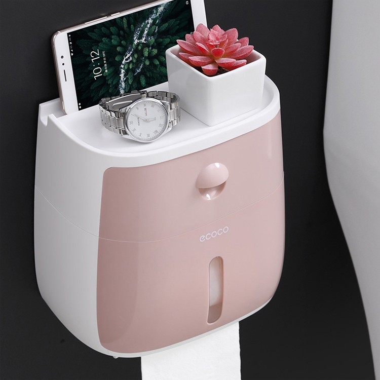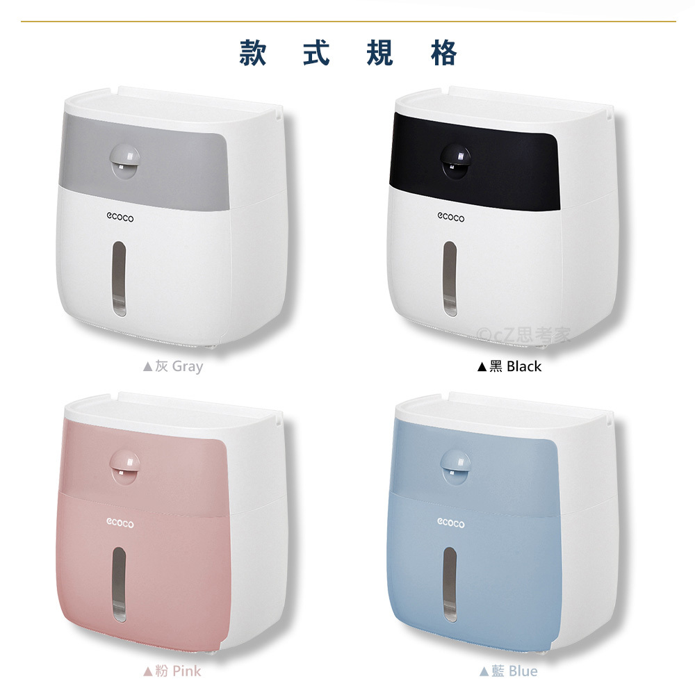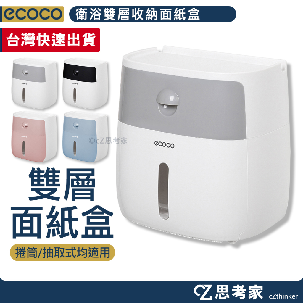 ecoco 衛浴雙層收納面紙盒 按壓彈蓋面紙盒 衛生紙盒 捲筒衛生紙盒 收納盒 收納架 浴室收納 面紙 衛生紙灰|粉|藍|黑Tissue HolderscZ思考家 – 3C手機配件
