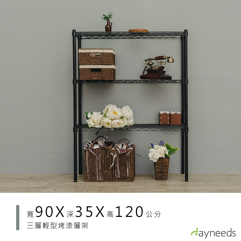 dayneeds 輕型三層置物架90x35x120公分(烤漆黑白)層架 鐵力士架 收納架 廚房架 置物櫃黑色|白色Shelves & Racksdayneeds收納生活館