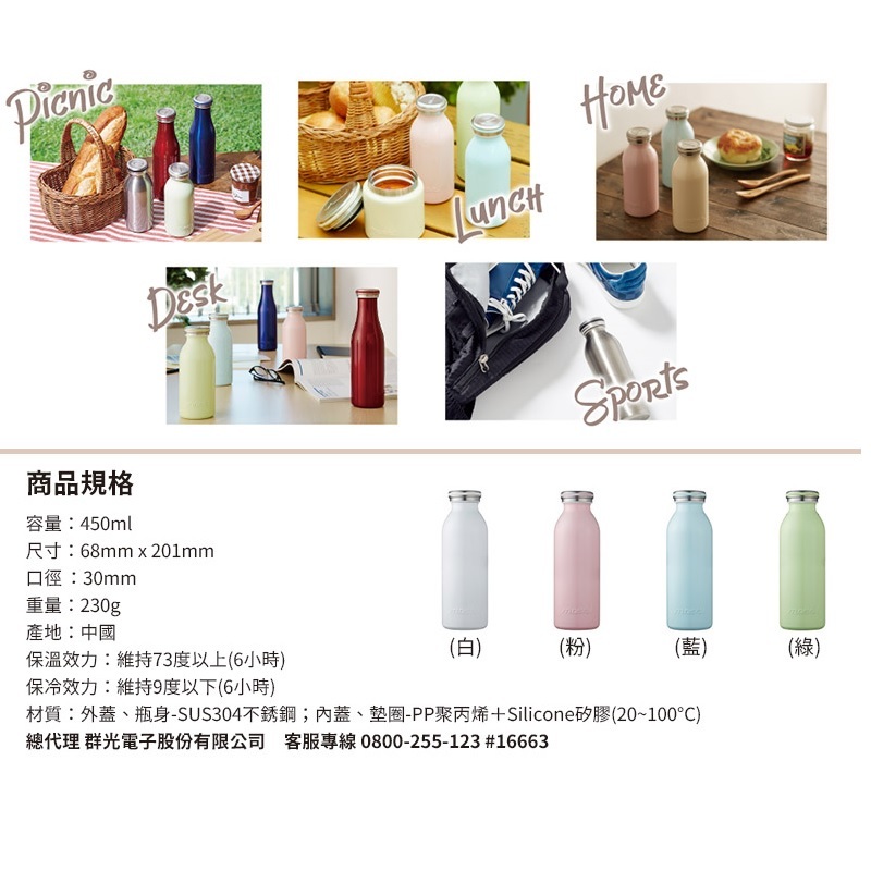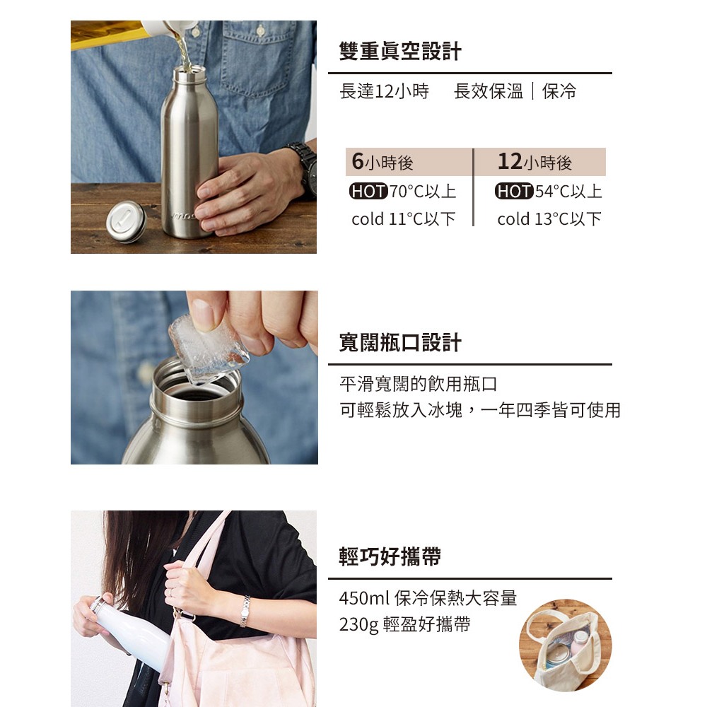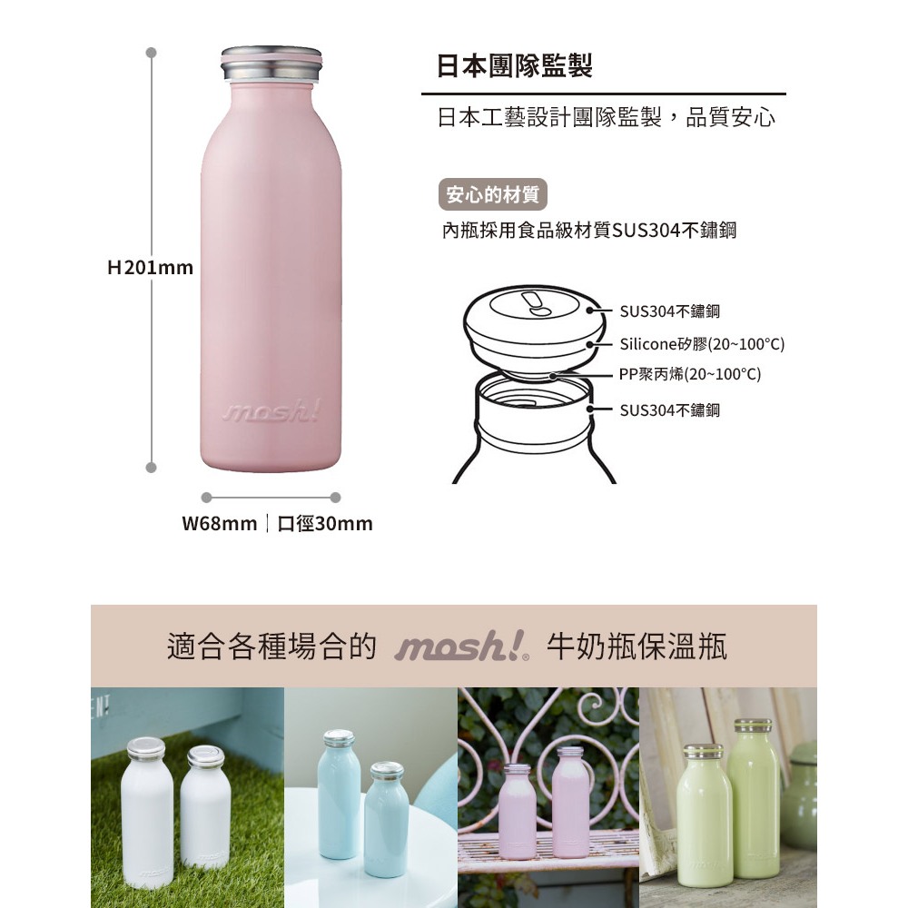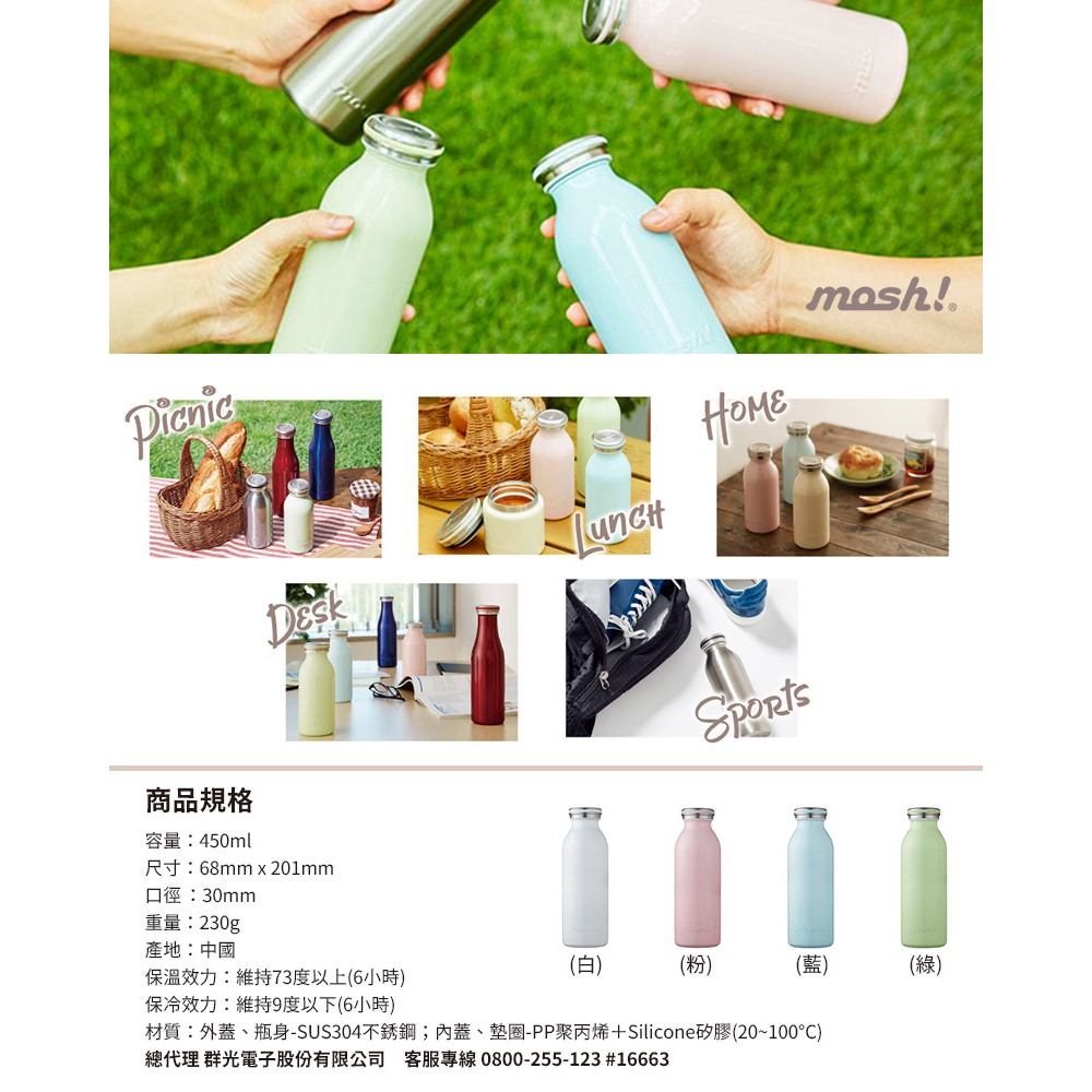 Doshisha MOSH 450ml牛奶瓶保溫瓶 不銹鋼 牛奶瓶 馬卡龍系 保冷保溫瓶天空藍|薄荷綠|白色Water Bottles & AccessoriesFind-things找好物