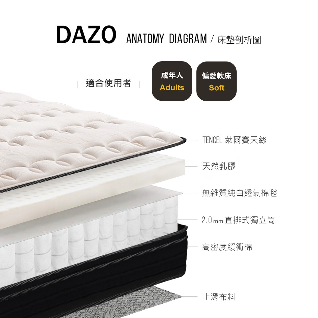 【 Dazo 】稍軟|萊爾賽天絲 天然乳膠 袋裝獨立筒 床墊【 蝦幣 10 倍送 】單人加大 3.5 尺|標準雙人 5 尺|雙人加大 6 尺MattressesDazo 得舒官方旗艦店