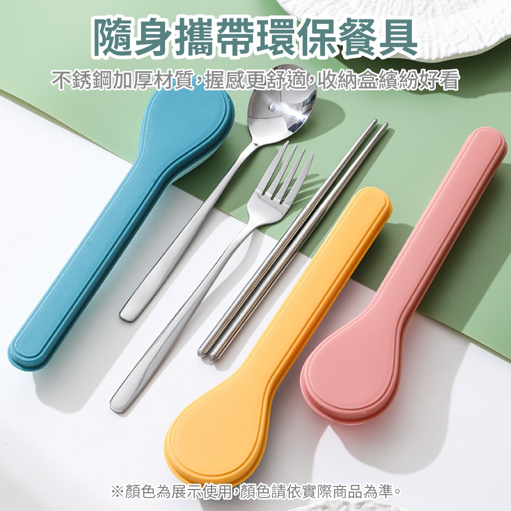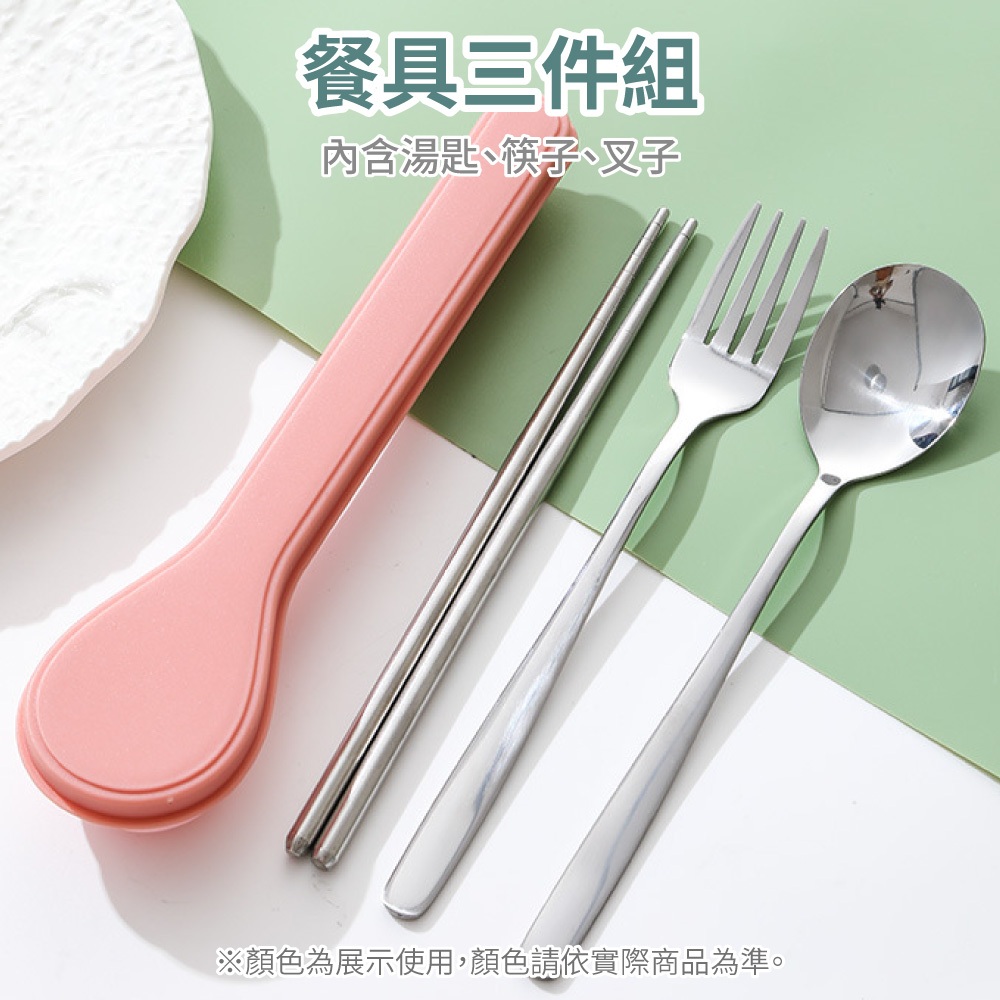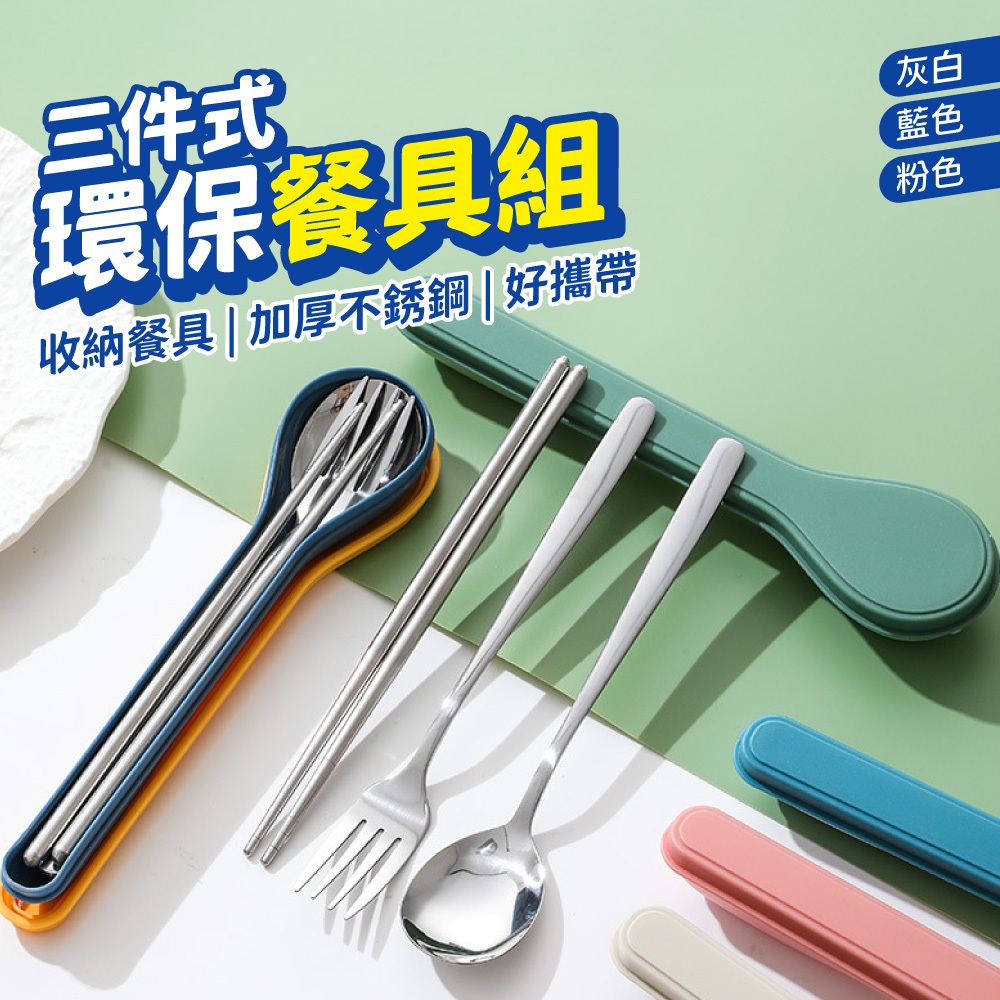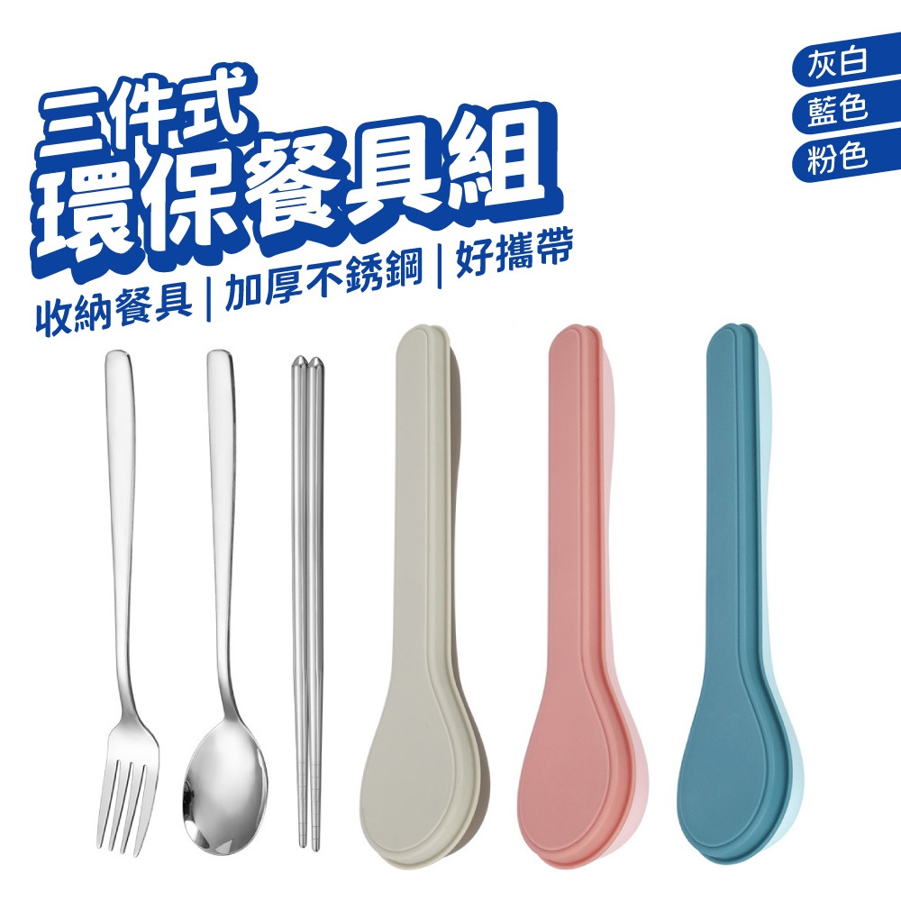 不鏽鋼餐具 餐具組 環保餐具組 環保餐具 外出餐具 餐具收納 餐具 環保筷 隨身餐具 可愛餐具組 三件套灰白|深淺粉|深淺藍CutleriesDA量販店