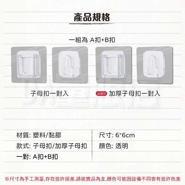 子母扣 掛勾 掛鈎 無痕 掛鉤 置物架 掛勾貼片 無痕貼 卡扣 無痕貼片 免打孔 免釘牆貼片 掛勾貼 免釘掛勾 無痕掛加厚子母扣 1對HooksDA量販店
