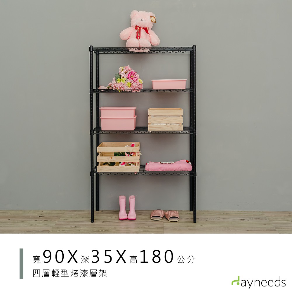 dayneeds 輕型四層置物架90x35x180公分(烤漆白)層架 鐵力士架 收納架 廚房架 置物櫃黑色|白色Shelves & Racksdayneeds收納生活館