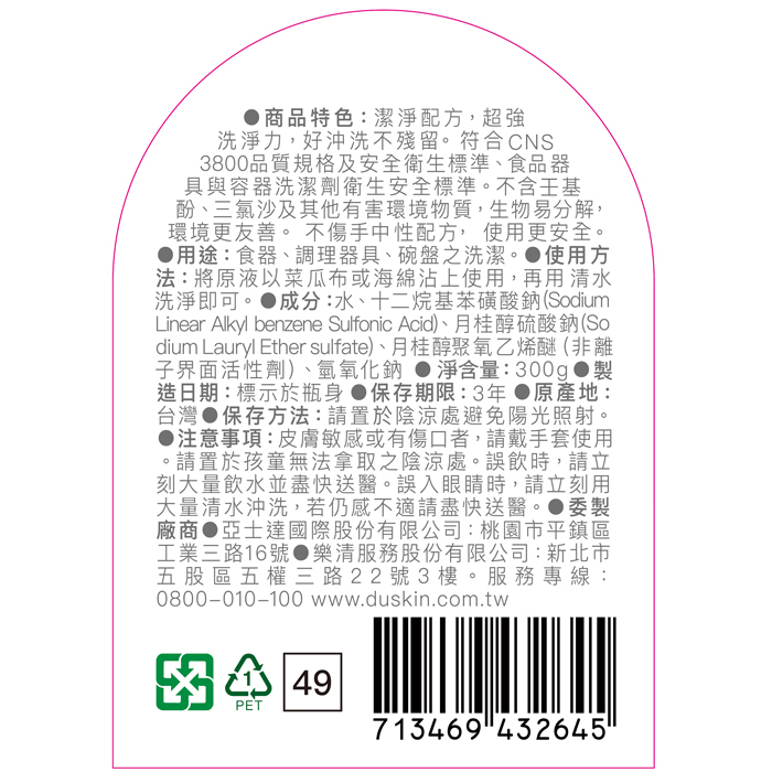 【DUSKIN樂清】餐具洗潔精/洗碗精(台製)2入|1入Cleaning AgentsDUSKIN 樂清(官方直營)