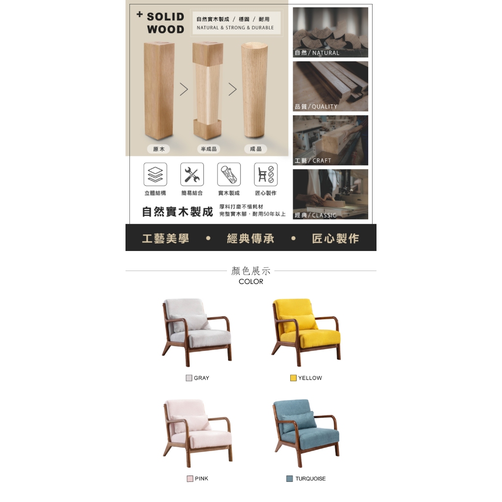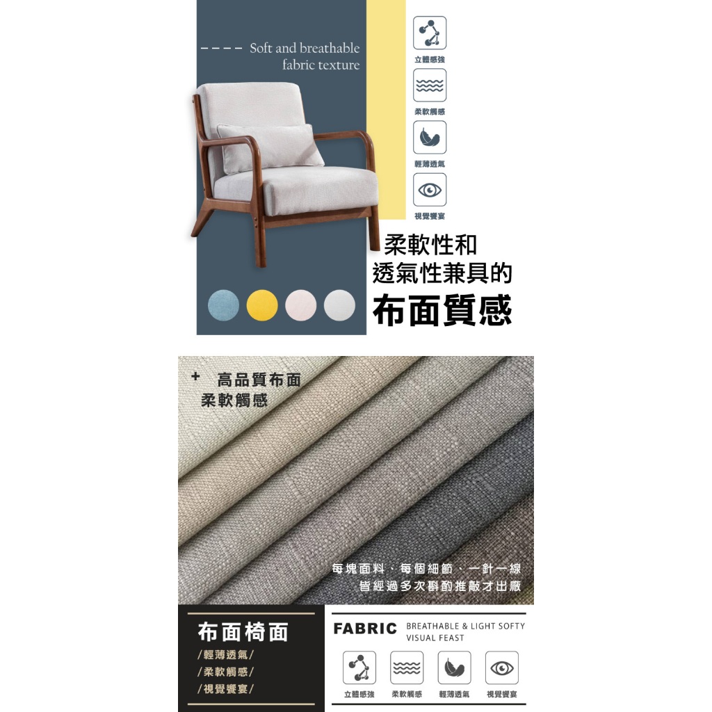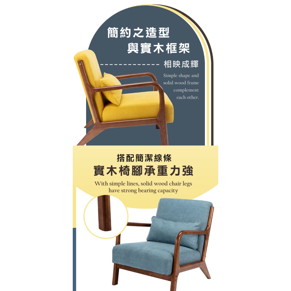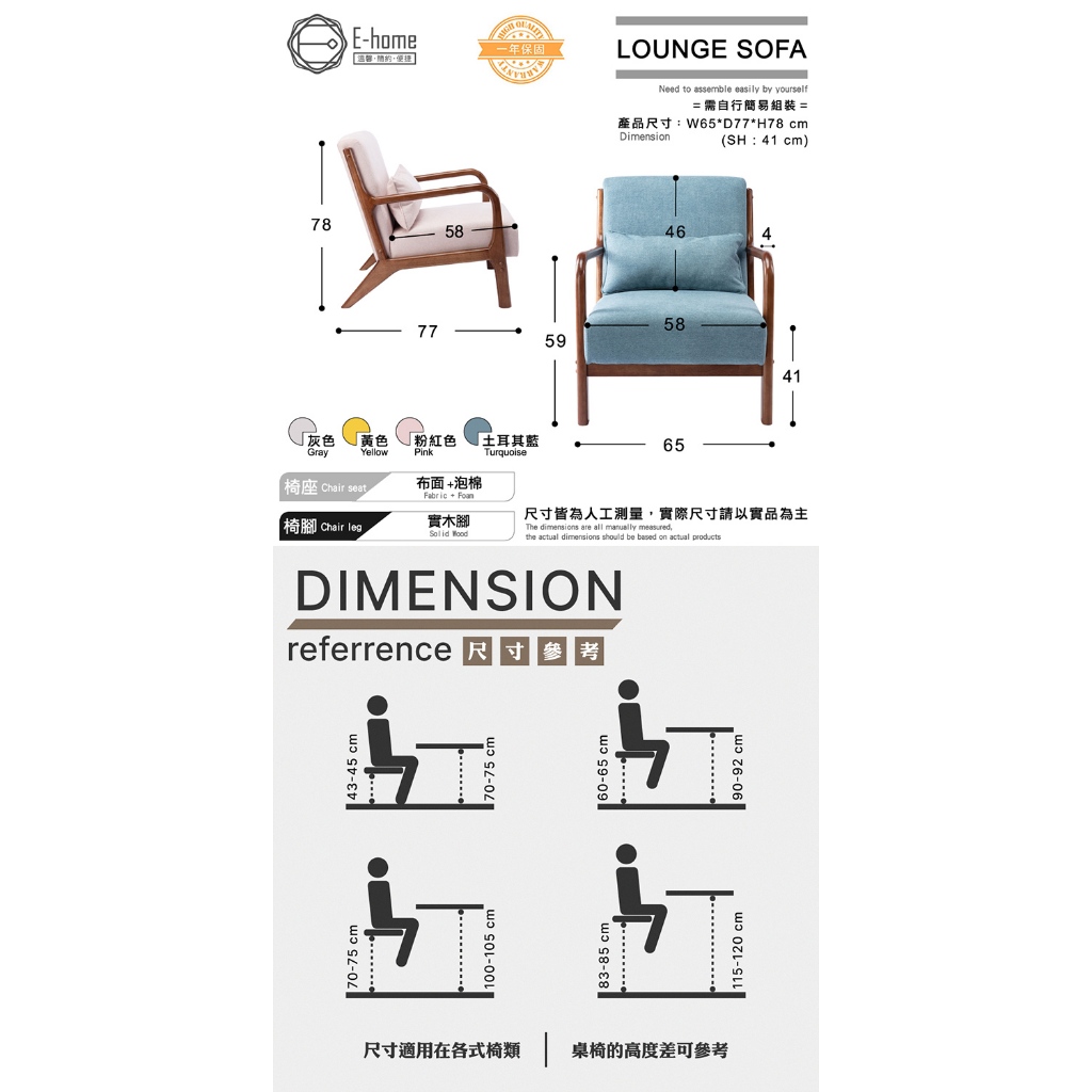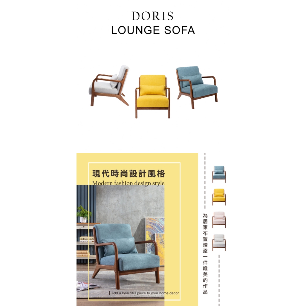 E-home 朵莉絲布面實木框單人休閒沙發灰色|土耳其藍|粉紅色|黃色SofasE-home 美規設計傢俱