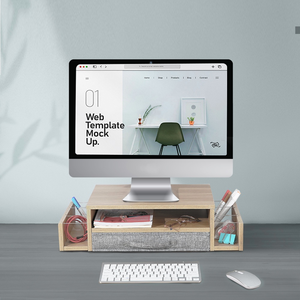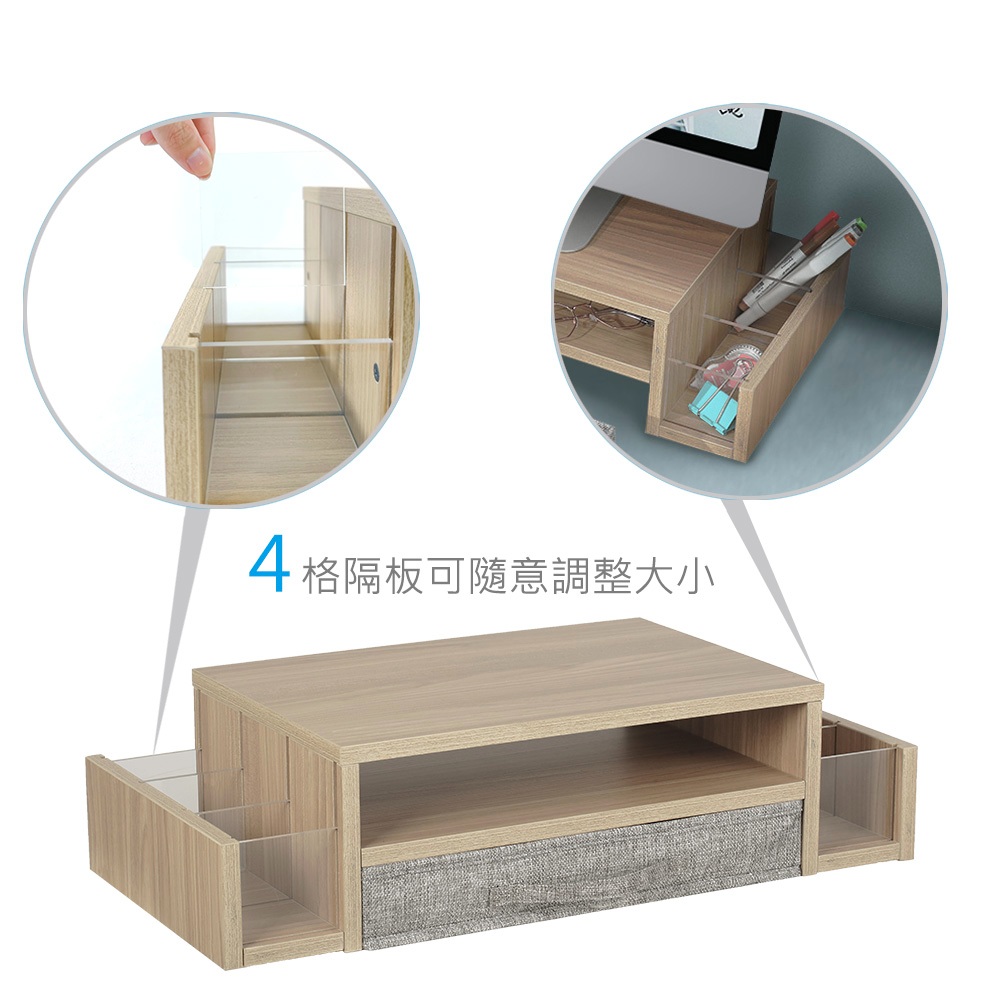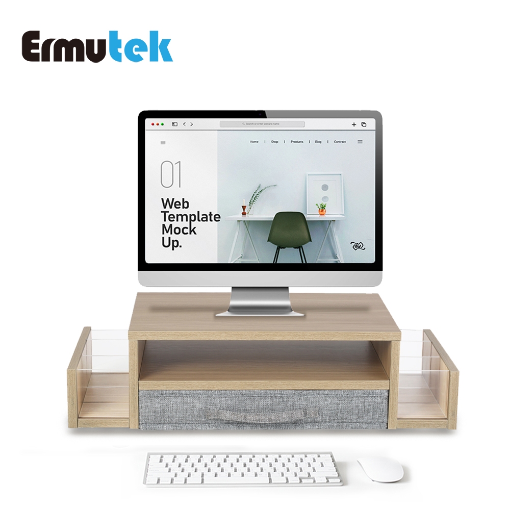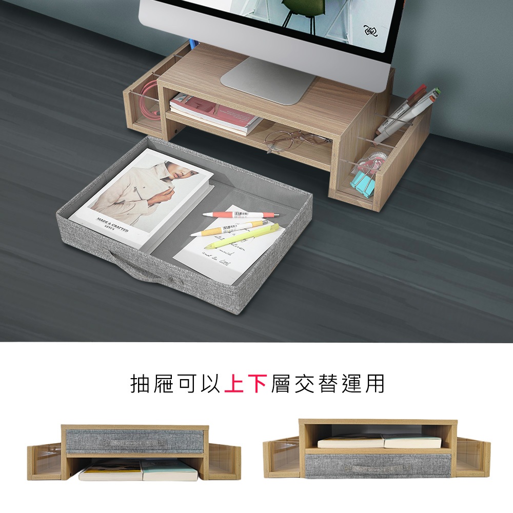 Ermutek 多功能收納桌上型木質雙層設計螢幕增高架/抽屜左右置物槽設計一般品|福利品_外盒破損產品良好Desk OrganizersErmutek 專業辦公支架