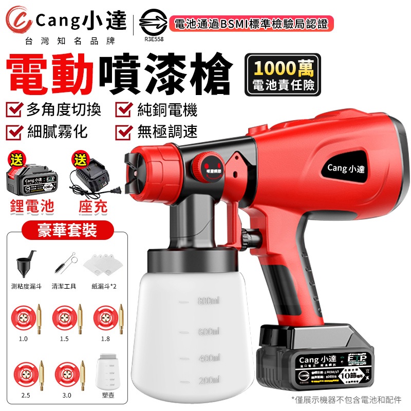 【Cang小達】電動噴漆槍 油漆噴槍 鋰電噴漆槍 5個銅噴嘴 無氣噴漆機 電動噴漆機 多角度調節 噴漆工具:R3E558鋰電至尊款【無電池無座充】全套配件|鋰電至尊款【五節一電+座充】全套配件|鋰電至尊款【五節兩電+座充】全套配件|鋰電至尊款【十節一電+座充】全套配件|鋰電至尊款【十節兩電+座充】全套配件|BSMI認證五節電池【10000M】|BSMI認證十節電池【20000M】Wall Paints & CoatingsCang小達丨品牌旗艦店
