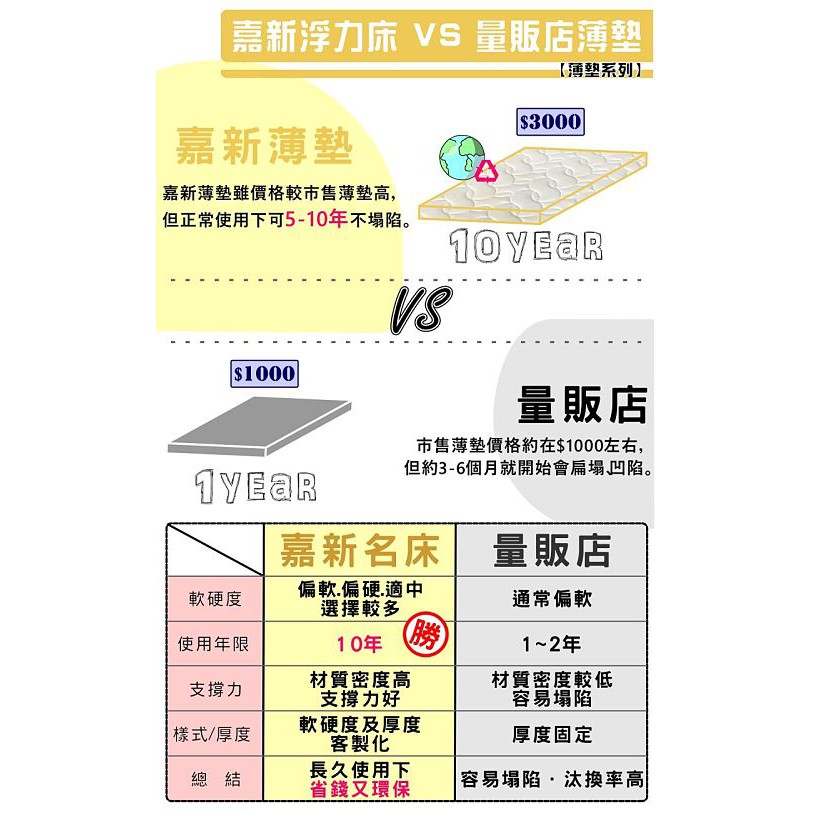 【嘉新名床】浮力床墊(10公分加硬款 銀離子)|10年保固 獨家抗菌 高支撐力 客製化 訂製 ikea尺寸適用3呎 91X190|3.5呎 106X190|5呎 152X190|6呎 182X190|7呎 210X180|4呎 121X190|ikea尺寸適用 91X200|ikea尺寸適用 106X200|ikea尺寸適用 120×200|ikea尺寸適用 152X200|ikea尺寸適用 182X200MattressesChia-Hsine 嘉新名床 官方商店