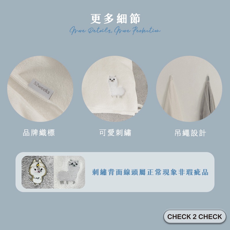 52weeks-超吸速乾親膚浴巾 SGS檢驗合格 吸水毛巾 乾髮巾 速乾 超吸水【CL00LC003】[現貨]純淨白(草尼馬)|淺灰(電寶)Towels & BathrobesCHECK 2 CHECK官方旗艦店