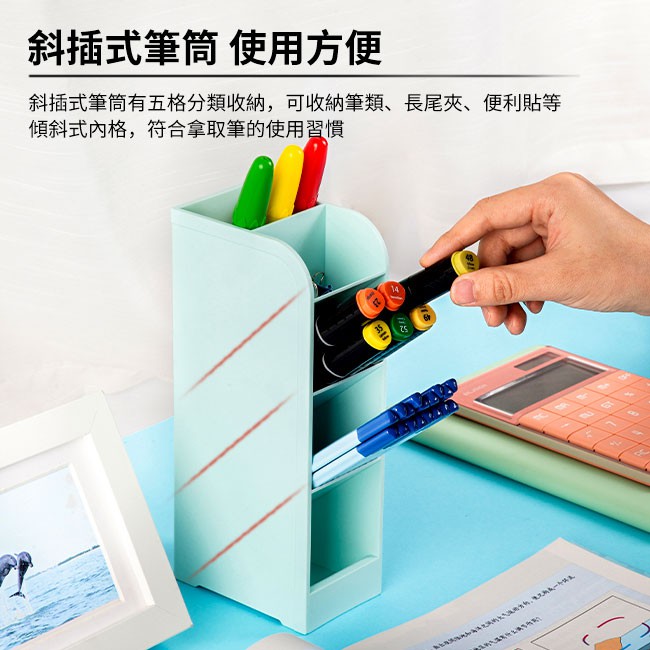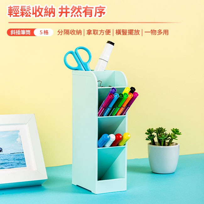 【Deli得力】5格斜插筆筒205x59x92.5mm(W8933) 台灣發貨 筆筒|得力旗艦店粉綠|粉紅|白色Desk OrganizersDeli 得力 旗艦店|台灣總代理