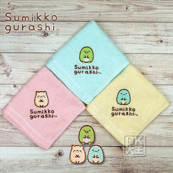 角落小夥伴 角落生物 純棉刺繡小方巾 手帕【DK大王】藍色(企鵝)/1條|粉色(貓咪)/1條|黃色(恐龍)/1條Towels & BathrobesDK大王旗艦店