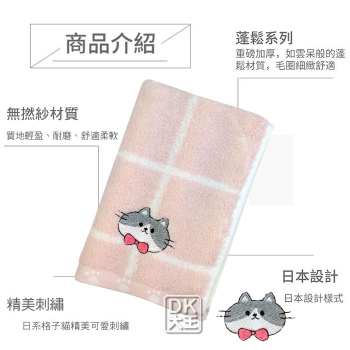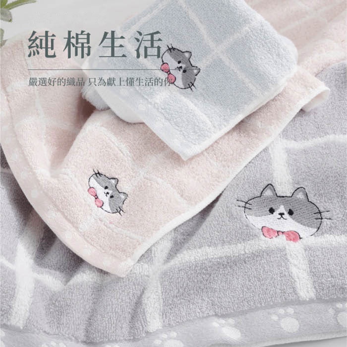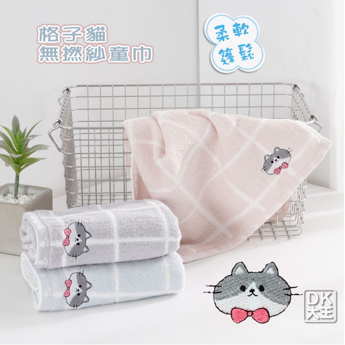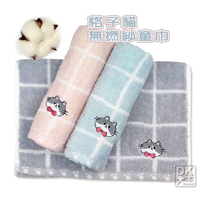 無撚紗 格子貓兒童毛巾 柔軟蓬鬆 純棉童巾格子貓童巾-灰色/1條|格子貓童巾-藍色/1條|格子貓童巾-粉色/1條Towels & BathrobesDK大王旗艦店