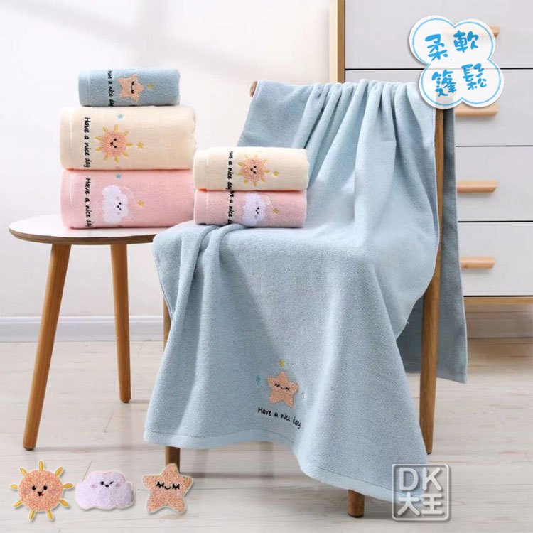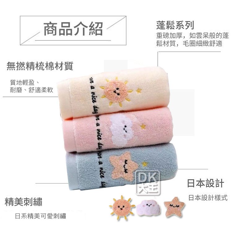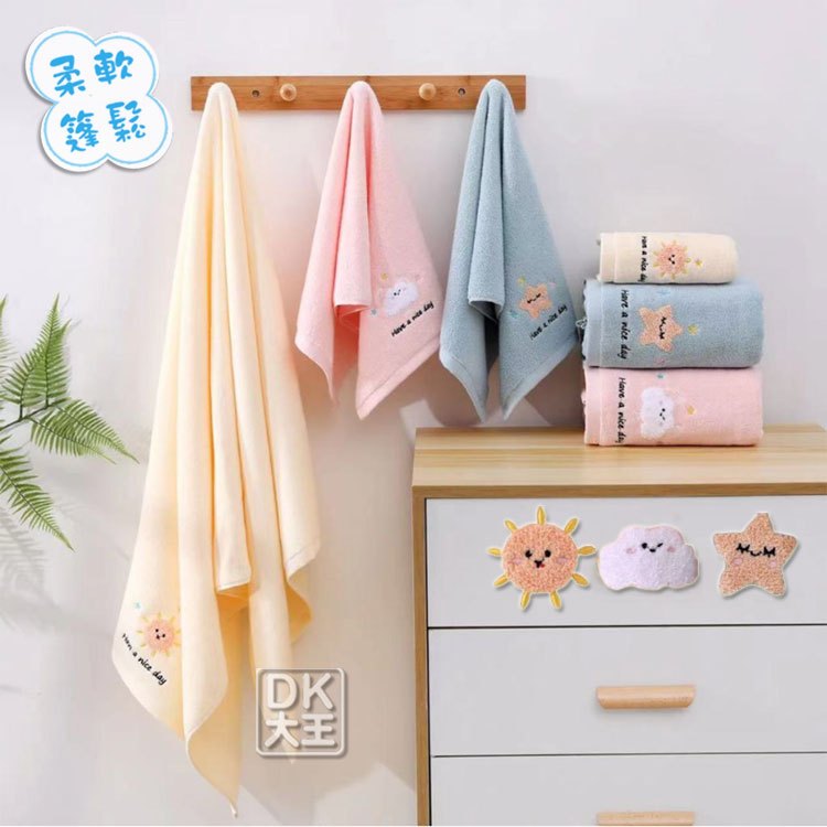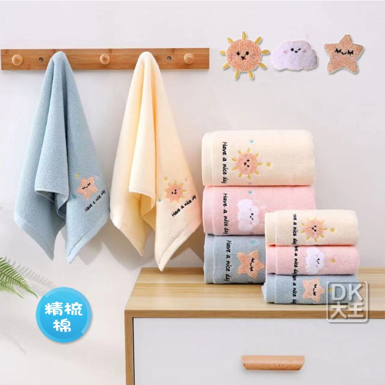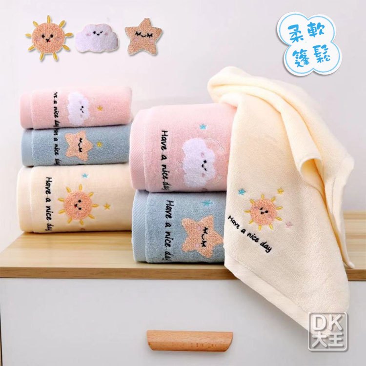 星星雲朵太陽 無撚精梳棉 方巾 純棉 柔軟蓬鬆 擦手巾 洗臉巾【DK大王】太陽-精梳棉擦手巾(黃色) /1條|雲朵-精梳棉擦手巾(粉色) /1條|星星-精梳棉擦手巾(藍色) /1條Towels & BathrobesDK大王旗艦店
