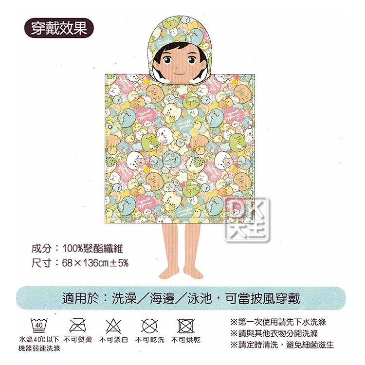 角落小夥伴 角落生物 花色款 連帽浴巾 兒童浴衣浴袍 日本正版授權【DK大王】