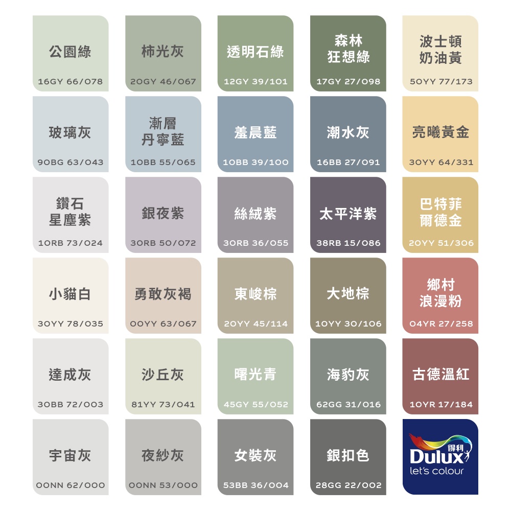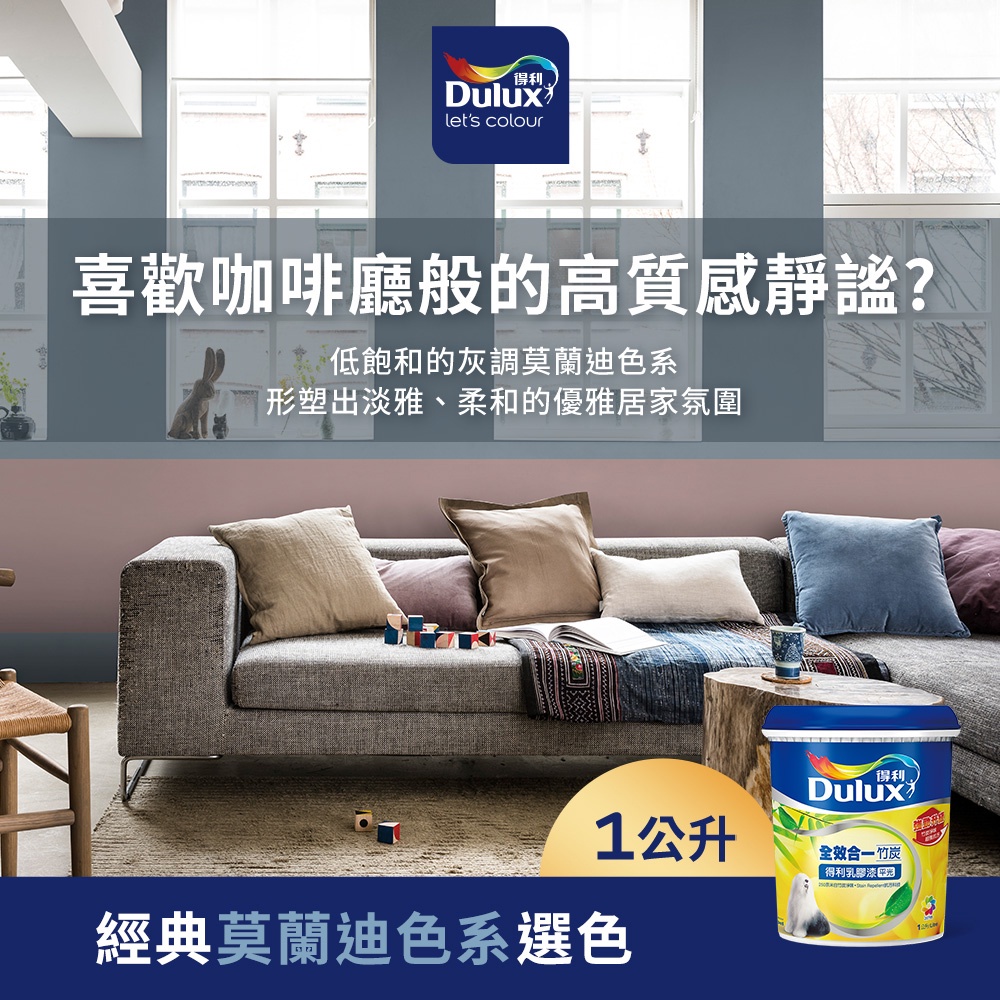 【得利官方旗艦店】A986 全效合一竹炭乳膠漆 經典莫蘭迪色系選色 電腦調色(1公升裝)|客製化調色漆00NN 62/000(客製色無退換)|90BG 63/043(客製色無退換)|16BB 27/091(客製色無退換)|30RB 50/072(客製色無退換)|20GY 46/067(客製色無退換)|17GY 27/098(客製色無退換)|38RB 15/086(客製色無退換)|62GG 31/016(客製色無退換)|00NN 53/000(客製色無退換)|10YR 17/184(客製色無退換)|16GY 66/078(客製色無退換)|12GY 39/101(客製色無退換)|10BB 39/100(客製色無退換)|00YY 63/067(客製色無退換)|53BB 36/004(客製色無退換)|30YY 78/035(客製色無退換)|10YY 30/106(客製色無退換)|30BB 72/003(客製色無退換)|10RB 73/024(客製色無退換)|20YY 45/114(客製色無退換)|20YY 51/306(客製色無退換)|30YY 64/331(客製色無退換)|04YR 27/258(客製色無退換)|10BB 55/065(客製色無退換)|30RB 36/055(客製色無退換)|81YY 73/041(客製色無退換)|45GY 55/052(客製色無退換)|28GG 22/002(客製色無退換)|50YY 77/173(客製色無退換)Wall Paints & CoatingsDulux得利塗料官方旗艦店