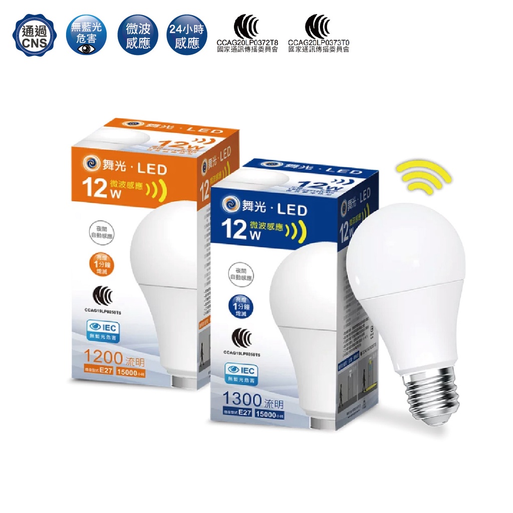 【舞光.LED】 LED E27/12W微波感應球泡燈泡(黃光/白光)【實體門市保固兩年】-E2712D/WR2-MS