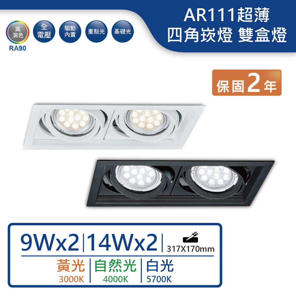 【舞光.LED】9W/14W/AR111替換式超薄四角崁燈 雙盒燈(黃光/自然光/白光)【實體門市保固二年】-25068