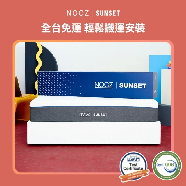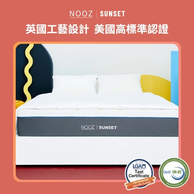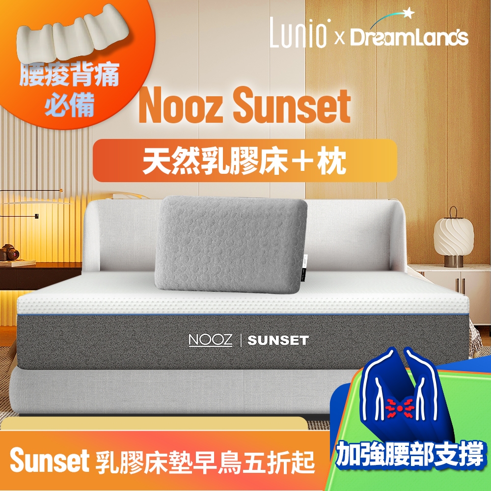 Nooz Sunset乳膠床+枕【腰酸背痛必備】非海綿/記憶棉 防蟎抗菌|加厚單人/雙人/雙人加大/雙人特大標準單人3呎 少量現貨|單人加大3.5呎 8/26陸續出貨|標準雙人5呎 少量現貨|雙人加大6呎 少量現貨|雙人特大6X7呎 8/26陸續出貨MattressesDreamlands精選名床|官方旗艦店Lunio / Nooz床墊