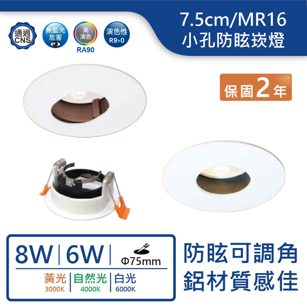 【舞光.LED】MR16/7.5cm/6W/8W可轉角小孔防眩崁燈【實體門市保固兩年】7RE005 7RE006 崁燈