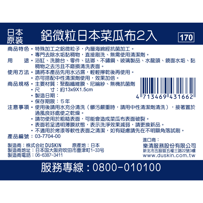 【DUSKIN樂清】日本鋁微粒菜瓜布 2入/包1包|2包Sponges & Scouring PadsDUSKIN 樂清(官方直營)