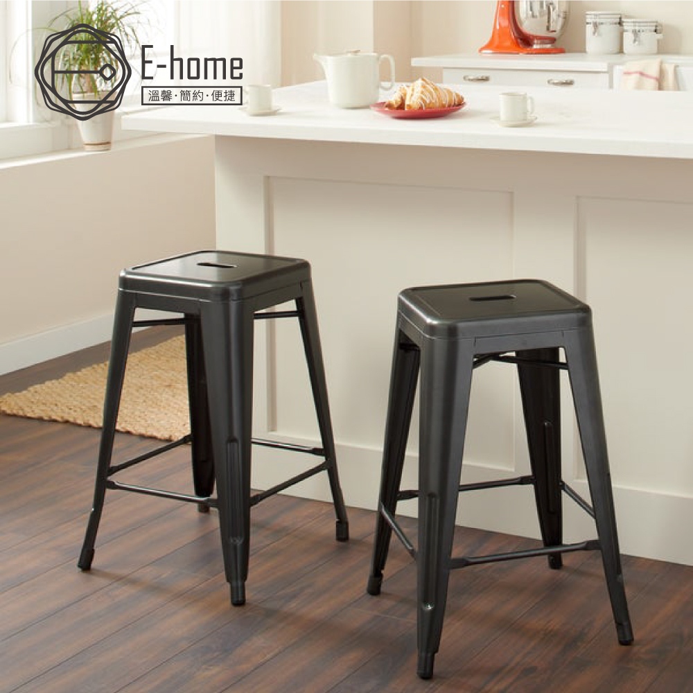 E-home 瓦力工業風可堆疊金屬吧臺椅 高61cm 高腳椅 升降椅 餐桌椅 椅子 吧台椅黑色Benches, Chairs & StoolsE-home 美規設計傢俱