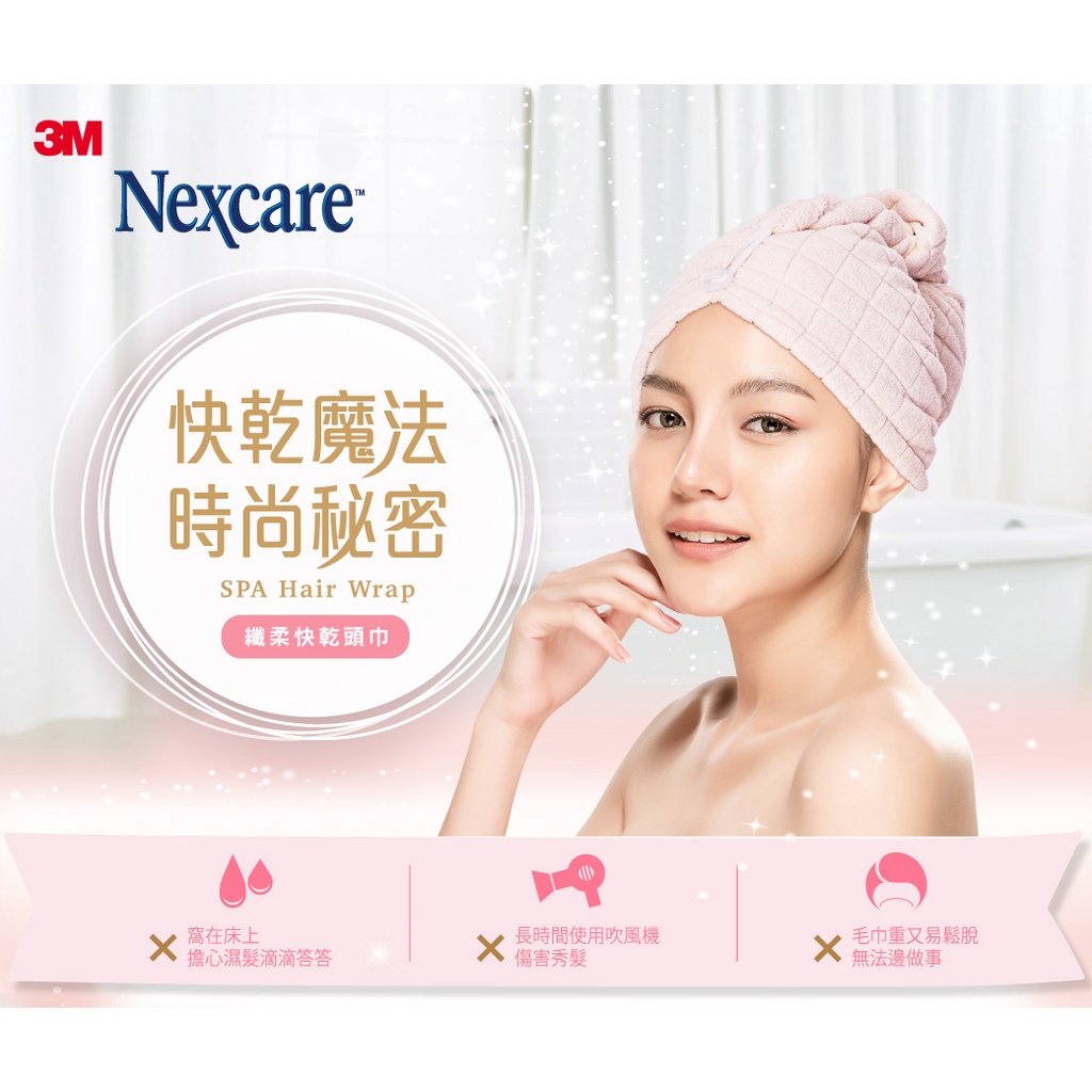 【Dr.Life生活館】3M SPA纖柔快乾頭巾 (粉紅色).帽型包覆,乾髮加倍,3.5倍超強吸水.原廠公司貨