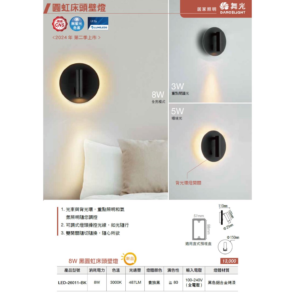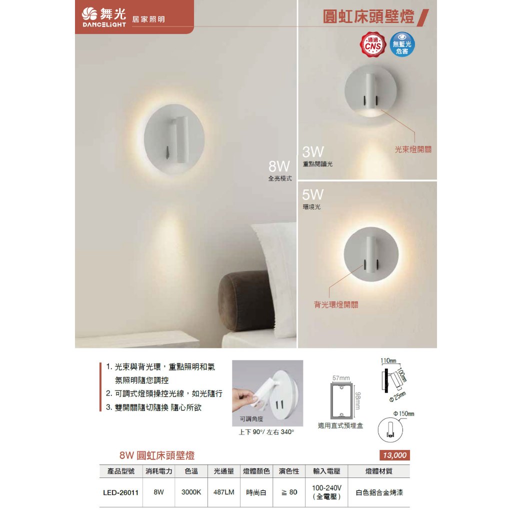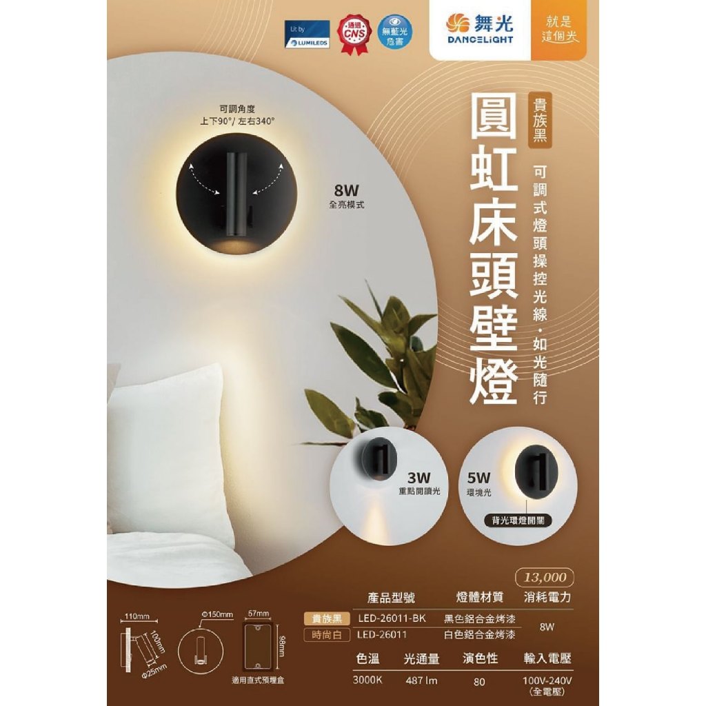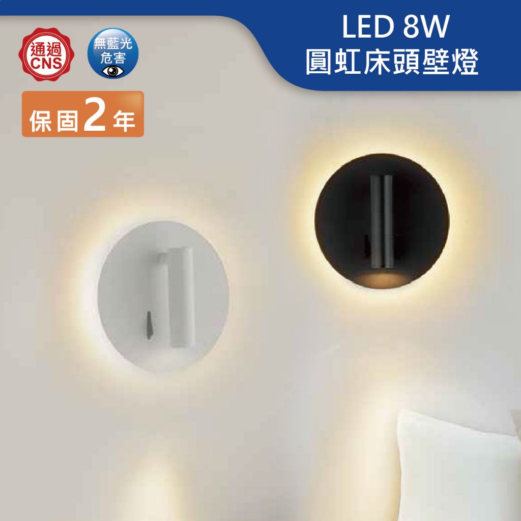 【舞光.LED】LED 8W圓虹 可轉向 床頭壁燈/黃光(黑殼/白殼)【實體門市保固兩年】-26011 床頭壁燈 閱讀燈白殼|黑殼DREAM LIGHTS 築光燈飾