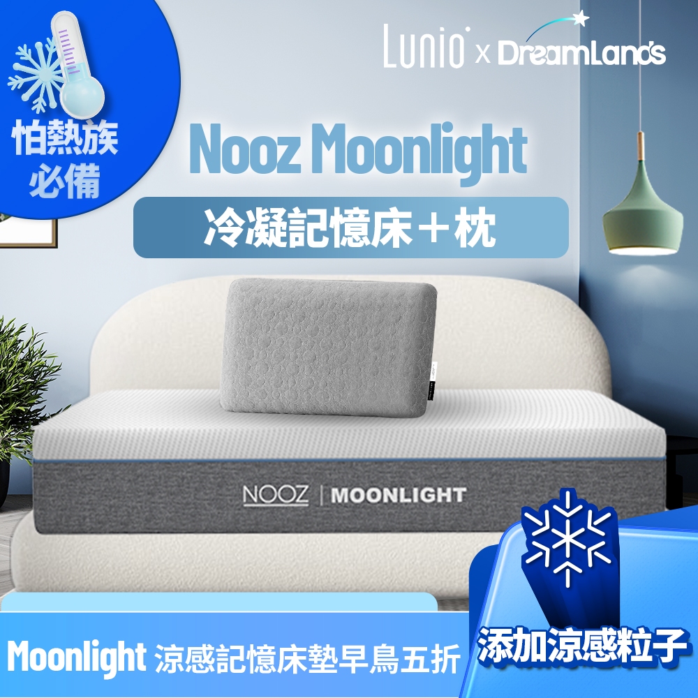 Nooz Moonlight記憶床+枕【怕熱者必備】|20cm厚|兒童床墊/單人/雙人/雙人加大/雙人特大單人加大3.5呎 8/22陸續出貨|標準雙人5呎 少量現貨|雙人加大6呎 少量現貨|雙人特大6X7呎少量現貨|標準單人3呎 8/22陸續出貨MattressesDreamlands精選名床|官方旗艦店Lunio / Nooz床墊