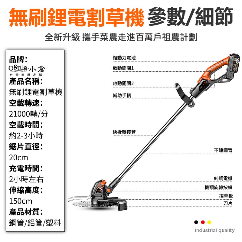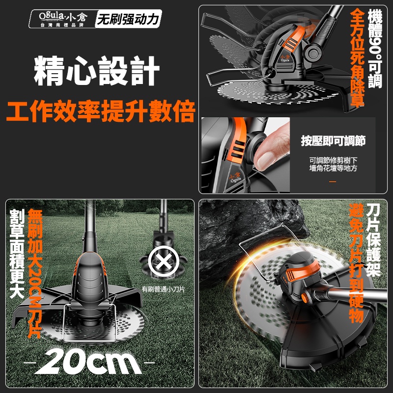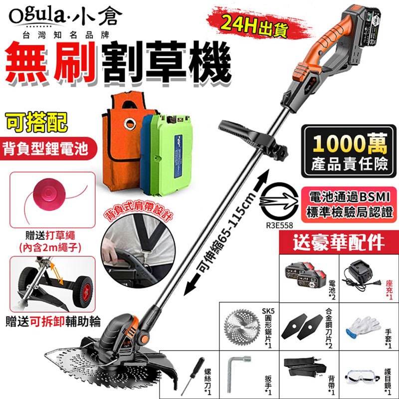 【Ogula小倉】無刷割草機 66000毫安超強續航 充電式鋰電割草機 認證BSMI:R3E558(官方正品 品牌保障)【無刷強悍款十節一電】快速座充+輔助輪|66000毫安背負型鋰電瓶【單電瓶一個】|【無刷強悍款裸機+輔助輪】無電池充座充|【無刷強悍款十五節一電】快速座充+輔助輪|【無刷強悍款十五節兩電】快速座充+輔助輪|66000毫安背負型鋰電瓶【無刷至尊款】|【無刷強悍款十節兩電】快速座充+輔助輪Lawn MowersCang小達丨品牌旗艦店