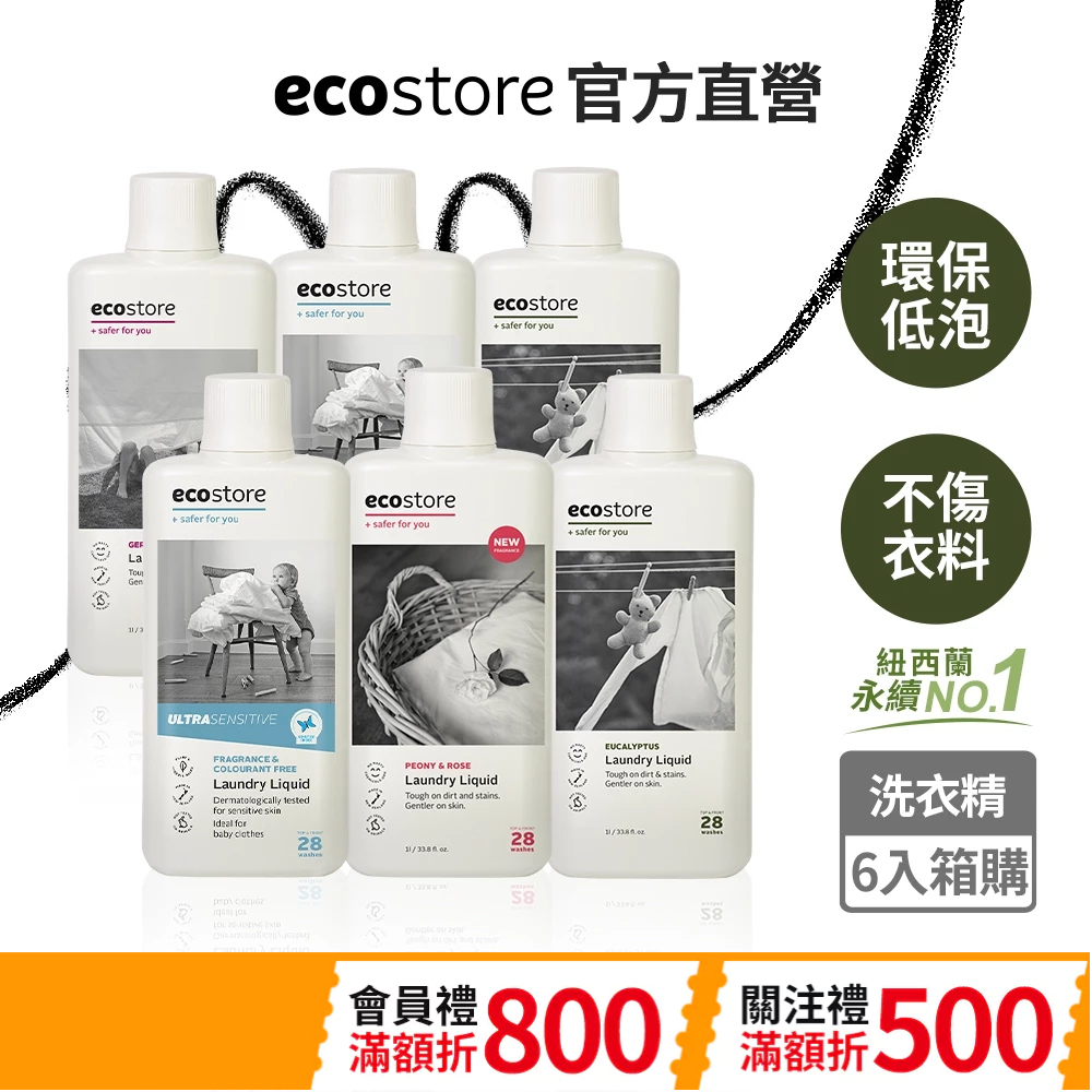 【ecostore宜可誠】超濃縮環保洗衣精1L*6入(箱購) 尤加利葉/柑橘天竺葵/抗敏無香/牡丹玫瑰超濃縮環保洗衣精-尤加利葉-1L-6入|超濃縮環保洗衣精-柑橘天竺葵-1L-6入|超濃縮環保洗衣精-抗敏無香-1L-6入|超濃縮環保洗衣精-牡丹玫瑰-1L-6入Laundry CareCelinda賽寧家電旗艦館