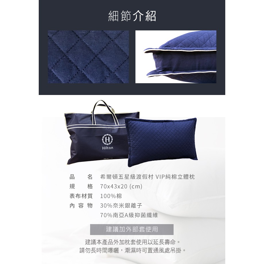 【Hilton 希爾頓】純棉立體抗螨抑菌枕/藍色/ 台灣製/ 可水洗 /透氣枕頭/ 飯店枕/【Hilton 希爾頓】純棉立體抗螨抑菌枕/藍色/ 台灣製/ 可水洗 /透氣枕頭/ 飯店枕/PillowsCERES席瑞絲批發團購