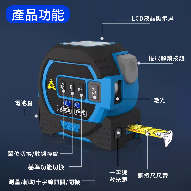 【Cang小達】測距儀 雷射測距儀 激光捲尺 高精度測量儀 電子測量尺子智能數顯捲尺 三合一量房儀【官方正品 品牌保障】40米激光測距+5米捲尺|60米激光測距+5米捲尺ToolsCang小達丨品牌旗艦店