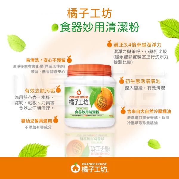 橘子工坊 食器妙用清潔粉 食器清潔 450g橘子工坊 食器妙用清潔粉 食器清潔 450gCleaning AgentsDA量販店