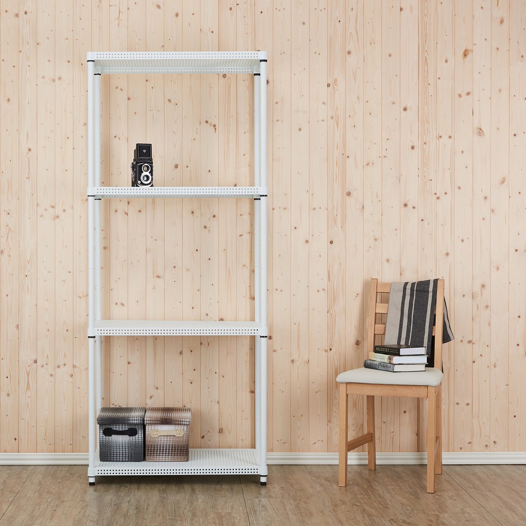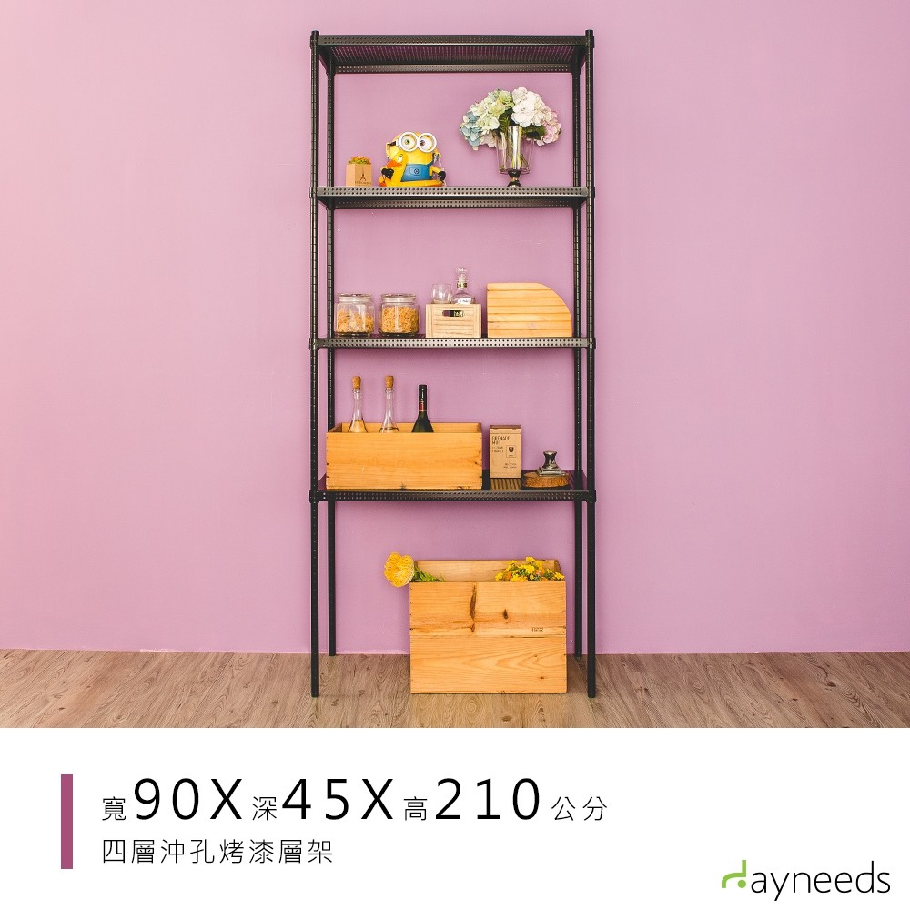 dayneeds 沖孔四層置物架90x45x210公分(烤漆兩色)沖孔架 耐荷重 可調整 家具 DIY架子 沖孔板鐵架黑|白Shelves & Racksdayneeds收納生活館