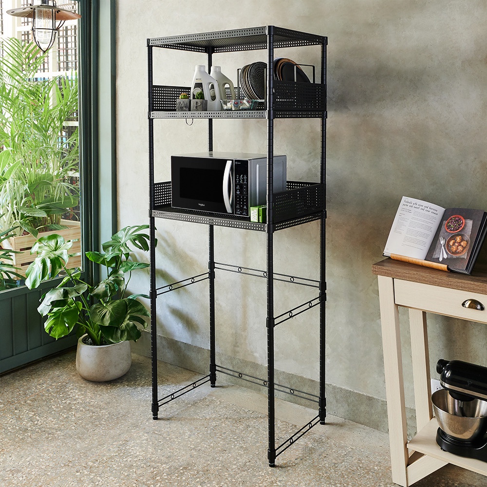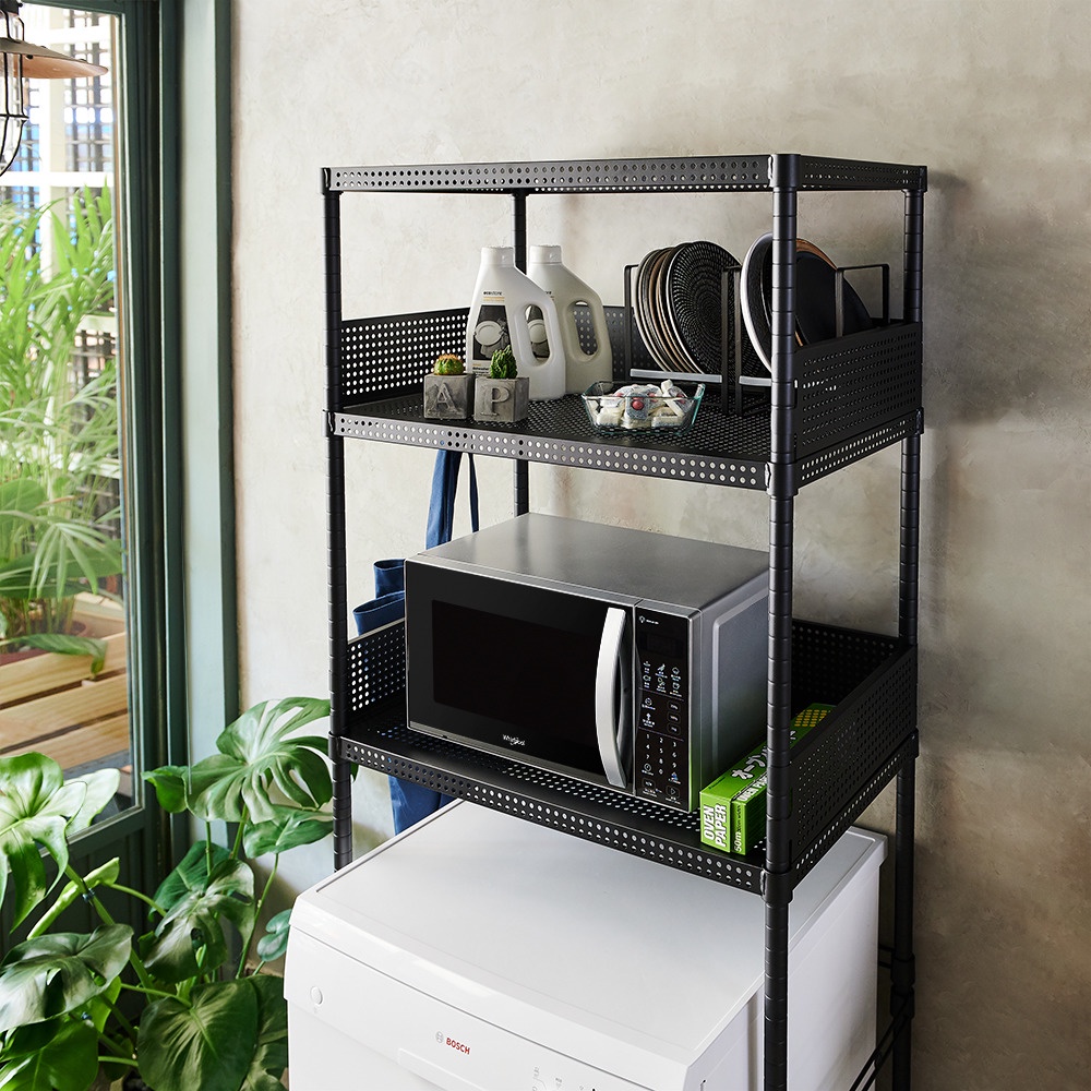 【鐵坊家具】C洗碗機三層收納架 鐵架 貨架 鐵力士 收納 小冰箱 波浪架 展示架 洗衣機 鍍鉻架 組合架 洗碗機 可調黑色|白色|香檳色Storage Boxes, Bags & BasketsFeistore 鐵坊家具/鐵架收納