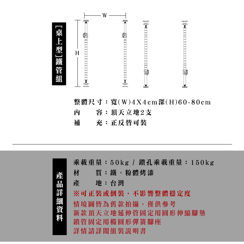 dayneeds 頂天立地(第三代改款)配件【高60-80cm桌上鐵管組2支】兩色可選 廚房架/桌上架/置物架/層架黑色|白色Desk Organizersdayneeds收納生活館