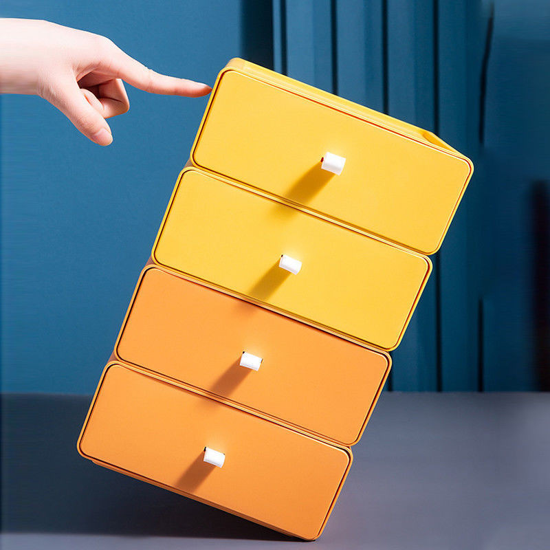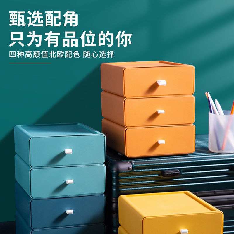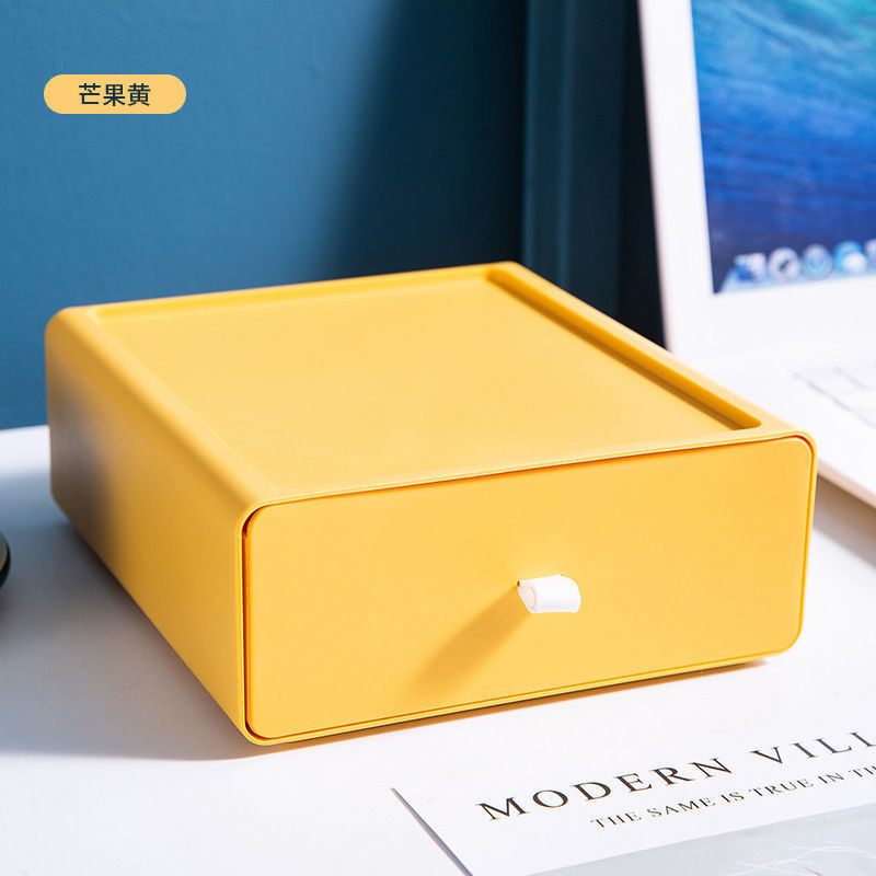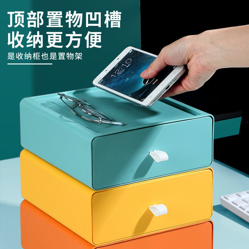 桌上收納盒ins 風新款化妝品首飾口紅辦公桌整理抽屜式家用多功能黃色/19*20*8cm|綠色/19*20*8cm|藍色/19*20*8cm|橘色/19*20*8cmDesk OrganizersFipper Taiwan