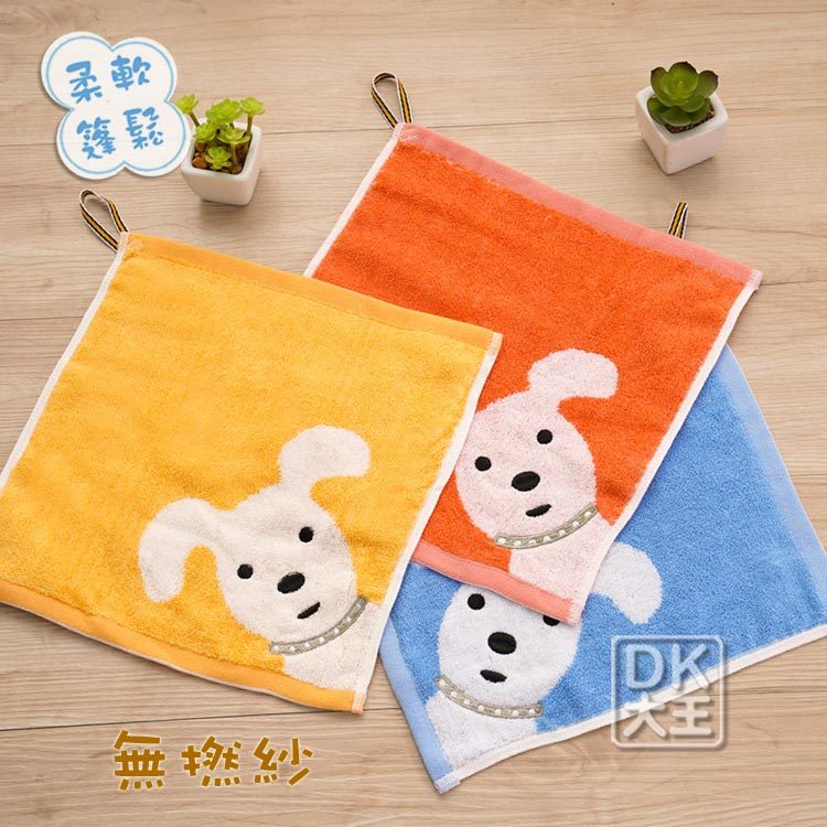 可愛狗狗擦手巾 無撚紗擦手巾 純棉方巾 手帕【DK大王】黃色/條|橘色/條|藍色/條Towels & BathrobesDK大王旗艦店