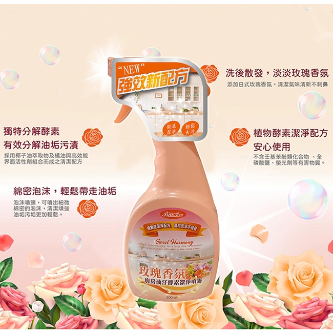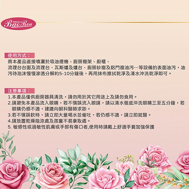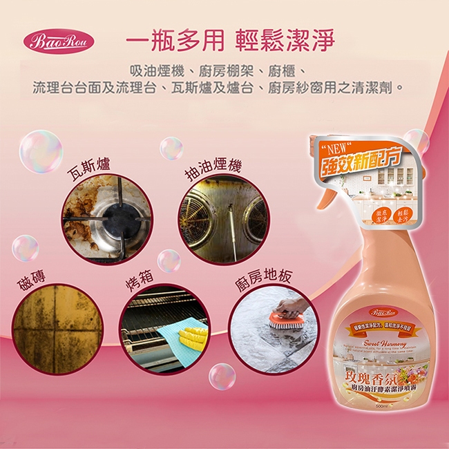 寶柔 BaoRou 玫瑰香氛 廚房油汙酵素潔淨噴霧500ml 六入組 台灣製寶柔 BaoRou 玫瑰香氛 廚房油汙酵素潔淨噴霧500ml 六入組 台灣製Cleaning AgentsDOLEE 多禮商城