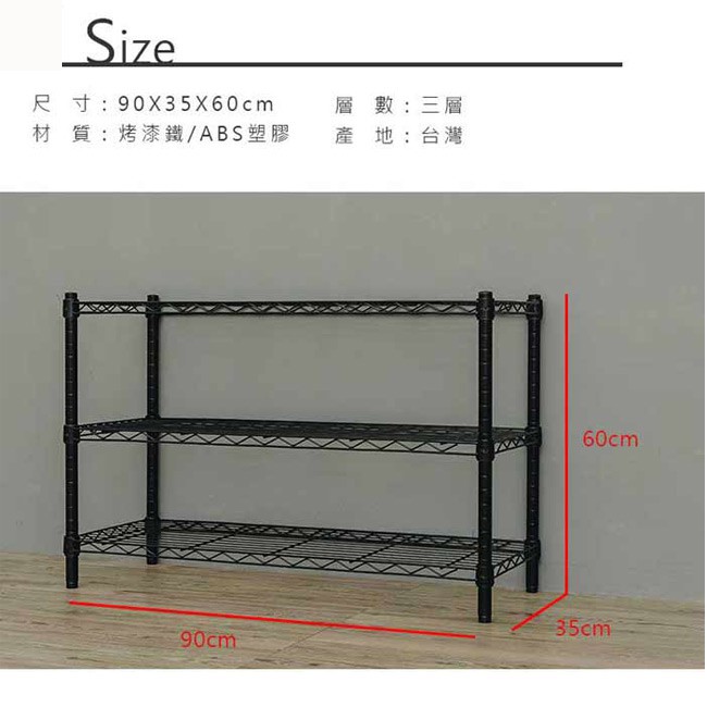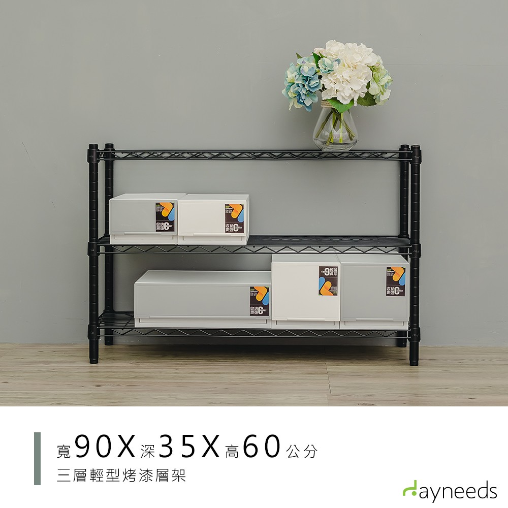dayneeds 輕型三層置物架90x35x60公分(烤漆黑白)層架 鐵力士架 收納架 廚房架 置物櫃黑色|白色Shelves & Racksdayneeds收納生活館