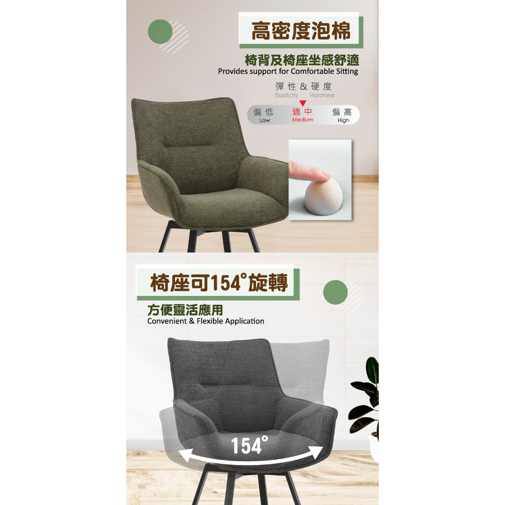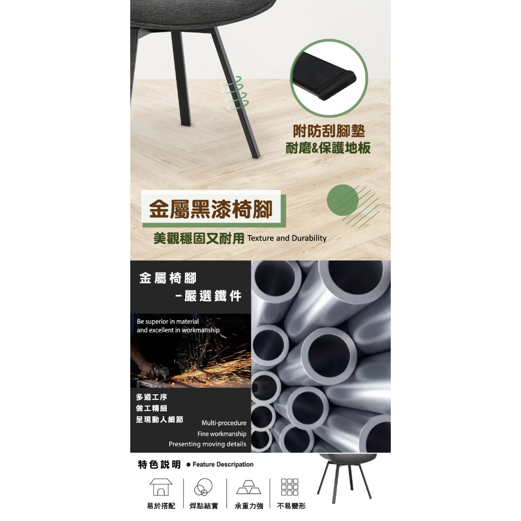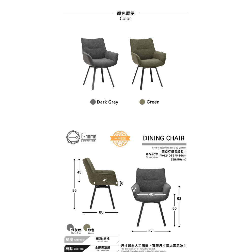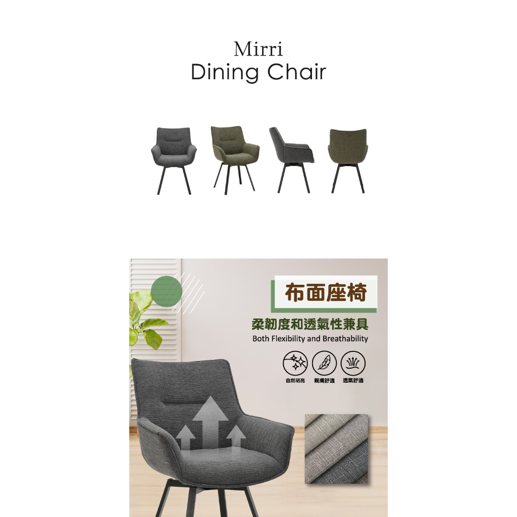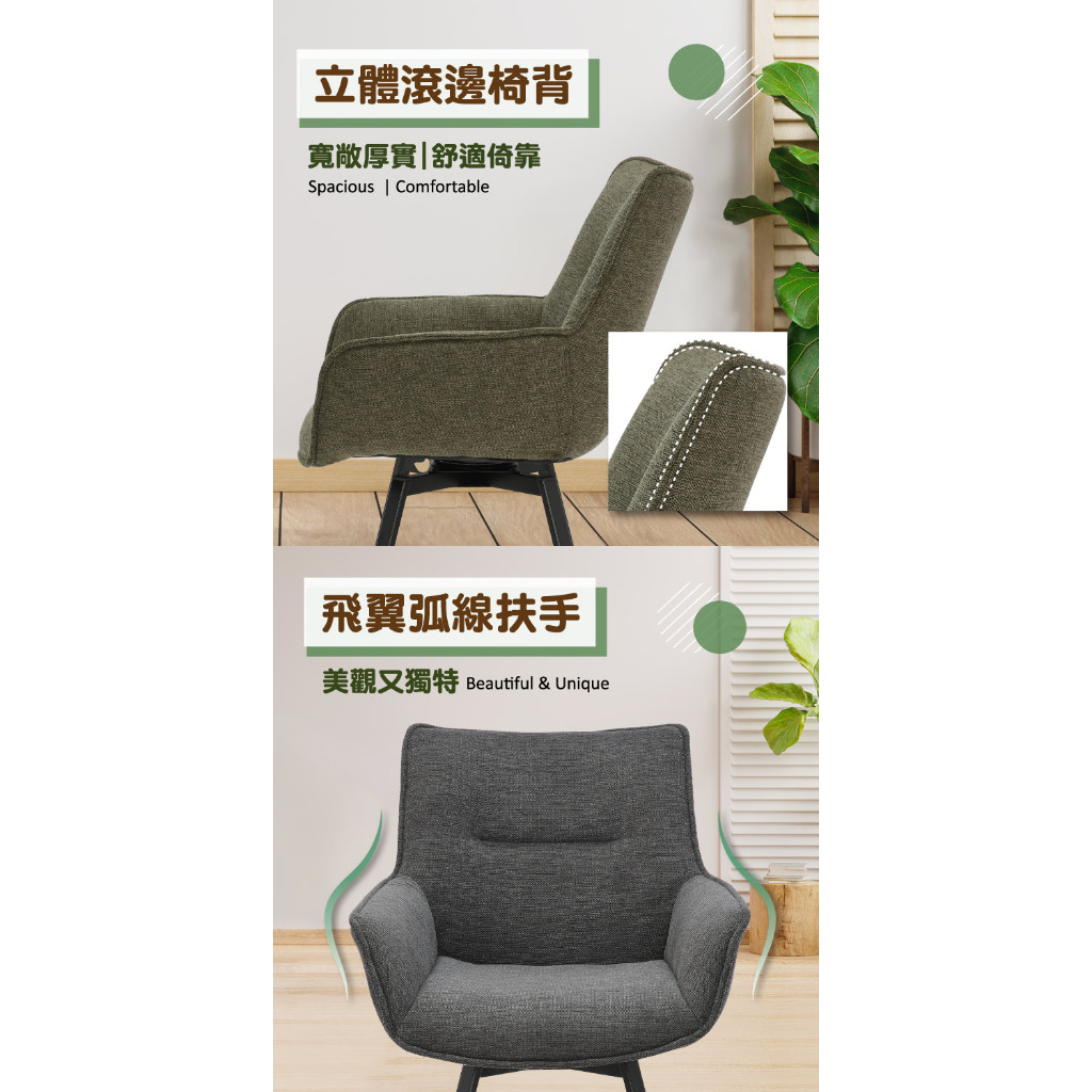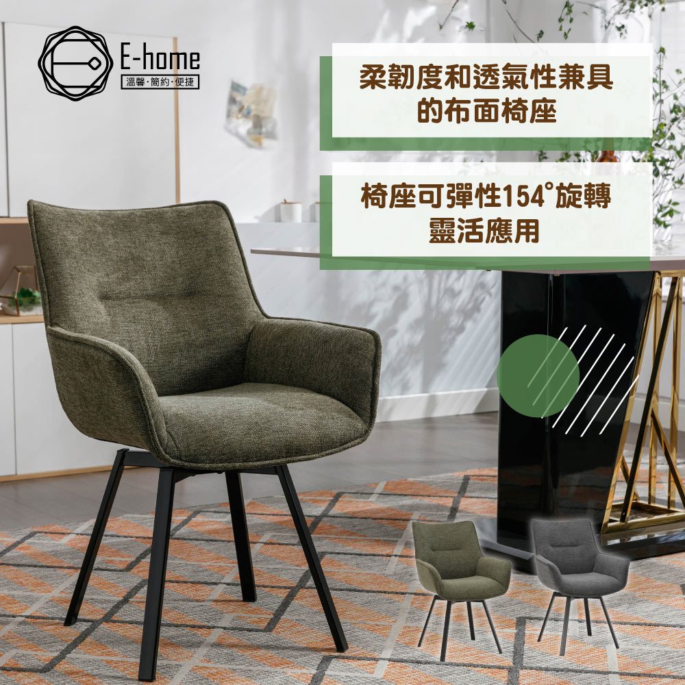 E-home 米里布面扶手旋轉黑漆鐵腳休閒餐椅 餐桌椅 化妝椅 椅子 美容椅 書桌椅深灰色|綠色Benches, Chairs & StoolsE-home 美規設計傢俱