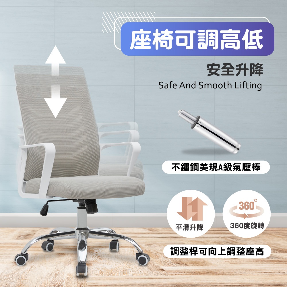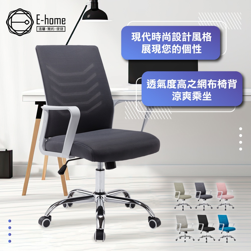 E-home 貝茲扶手半網可調式白框電腦椅 辦公椅 椅子 書桌椅 人體工學 美容椅水藍|粉紅|灰色|淺灰色|黑色Benches, Chairs & StoolsE-home 美規設計傢俱