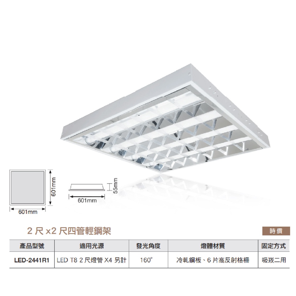 【舞光.LED】LED T8/2尺/4管輕鋼架燈(黃光/自然光/白光)【實體門市保固兩年】-2441R1輕鋼架燈 辦公室空台(不含燈管)|空台+T8/2尺/黃光x4|空台+T8/2尺/自然光x4|空台+T8/2尺/白光x4DREAM LIGHTS 築光燈飾