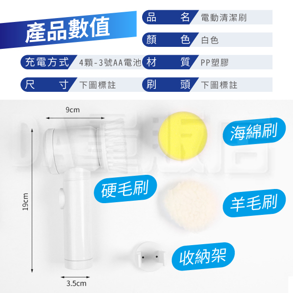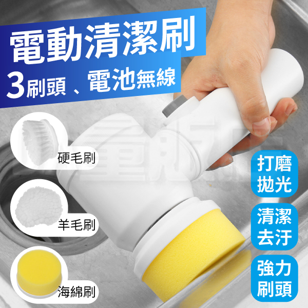 電動清潔刷 多功能電動清潔刷 三合一 電動刷洗機 清潔拋光打蠟 懶人清潔刷清潔刷[電池款]+3刷毛|替換三刷頭Cleaning BrushesDA量販店