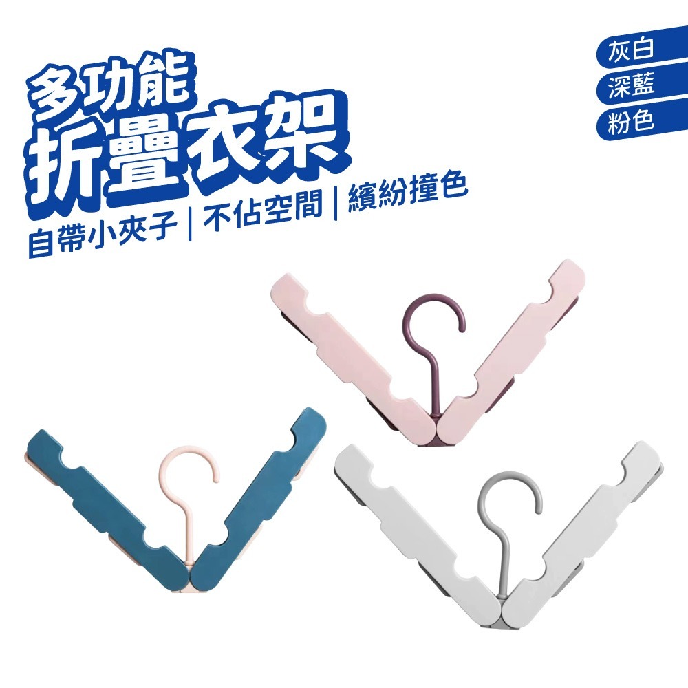 折疊衣架 衣架 旅行衣架 魔術衣架 夾子衣架 收納便攜 隱藏衣夾 旅行 出國 出差 掛衣 便攜衣架粉色|灰白|深藍Hangers & PegsDA量販店