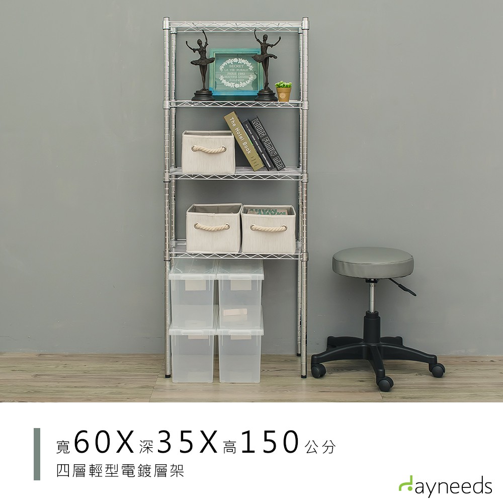 dayneeds 輕型四層置物架60x35x150公分(電鍍/烤漆)鐵力士架 收納架 廚房架 置物櫃電鍍(插管)|黑(鎖管)|白(鎖管)Shelves & Racksdayneeds收納生活館