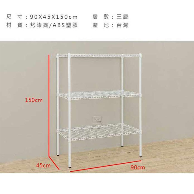 dayneeds 輕型三層置物架90x45x150公分(烤漆兩色)鐵架 鐵力士架 收納架 廚房架 置物櫃黑色|白色Shelves & Racksdayneeds收納生活館